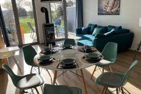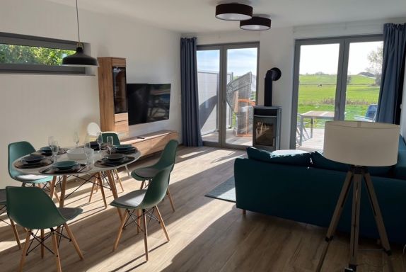 100m² Ferienhaus - The Fehmarn Lodges EMOTION - STRANDnah- bis 6 Personen- Urlaub mit Hund - eingezäuntes Grundstück - Südterrasse - Strandkorb - Grill - 2 Smart-TVs - schnelles WLAN - Kaminofen - Fußbodenheizung - Infrarot-Sauna - Parken vorm Haus - Brötchen-Service - Katcars