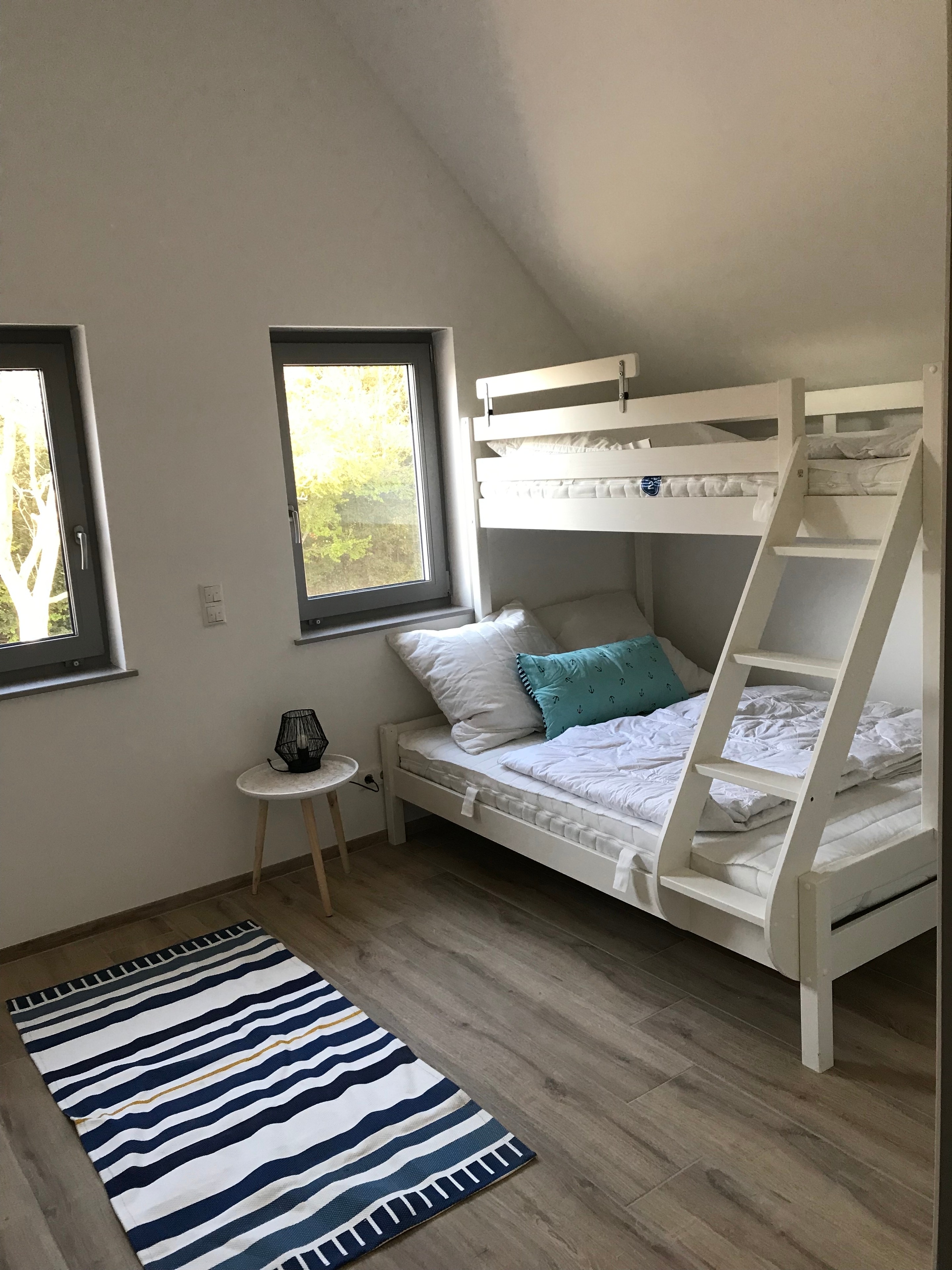 Schlafzimmer 2 mit Etagenbett für 3 Personen (140x200 und 90x200) ausgestattet mit großem Smart-TV.