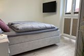 Schlafzimmer 2: Hochwertiges Boxspring-Bett mit durchgängiger Matratze (180 cm x 200) cm in Härtegrad 3, Verdunklungsrollos, Kleiderschrank und 43-Zoll Smart-TV