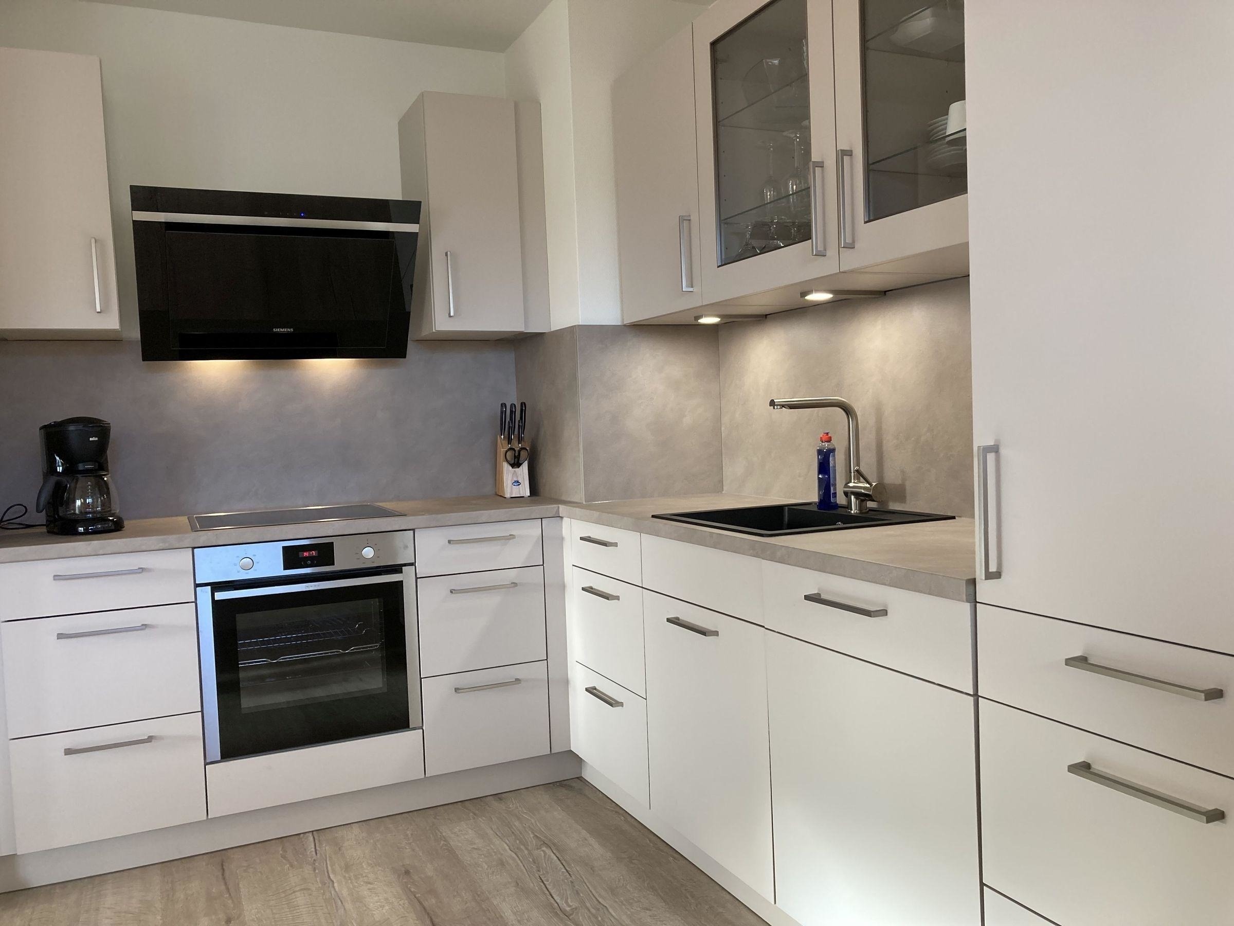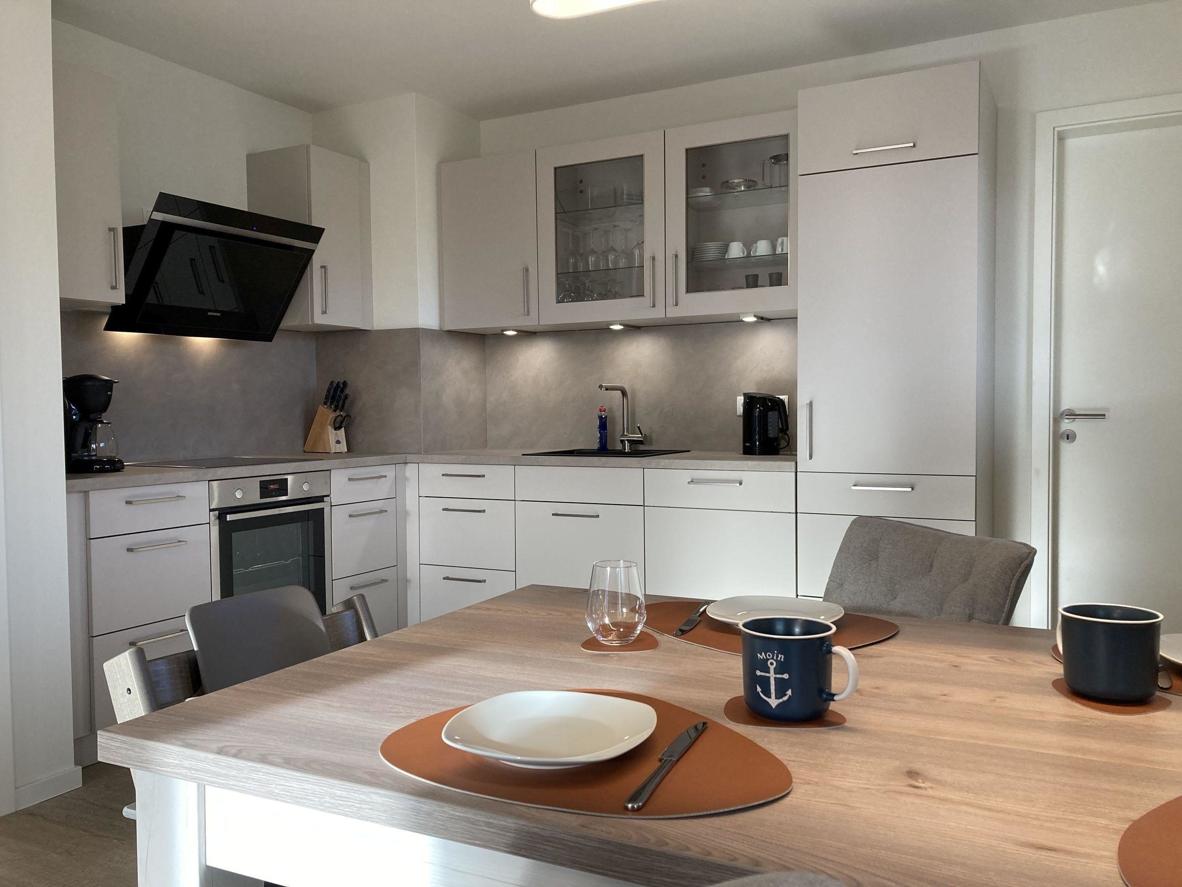 • offene voll ausgestattete Küche (SIEMENS Markengeräte) mit Essplatz für 4 Personen