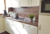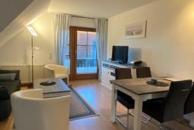 Die Ferienwohnungen mit Balkon haben ein gemütliches Wohnzimmer mit Sitzecke (Schlafsofa), TV und einen Essbereich. Die Küche ist praktisch eingerichtet mit ausreichendem Geschirr, Besteck und Gläser. Zum Inventar gehören auch ein Wasserkocher, Toaster, Kaffeemaschine, Geschirrspüler und Mikrowelle. Das Schlafzimmer ist mit einem Doppelbett (2x90x200cm) und großzügigem Kleiderschrank ausgestattet, im zweiten Schlafzimmer stehen zwei Einzelbetten (90x200cm) und ein Kleiderschrank (100cm breit). Das Badezimmer mit Fenster hat eine Dusche und WC. Hier steht auch die Waschmaschine.