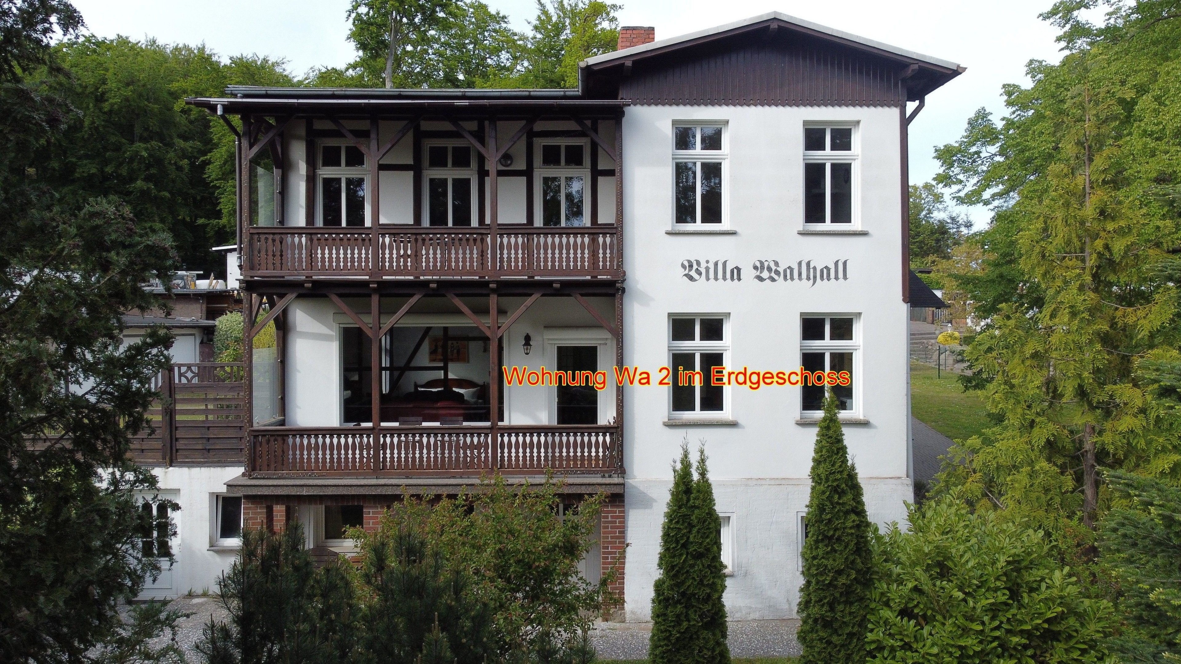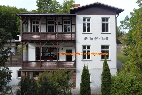 Die komfortable Ferienwohnung Nr. 2 (ca. 100qm) mit 1 überdachten Balkon, im Erdgeschoss der „Villa Walhall“ in einem ca. 5000qm großen parkähnlichen Garten - bietet Platz für 6 Personen. Kostenlose Stellplätze für Ihr Auto sind vorhanden