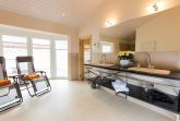 Der helle Wohn- und Essbereich eröffnet einen Panoramablick über die weitläufigen Felder der Sonneninsel.