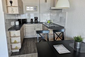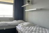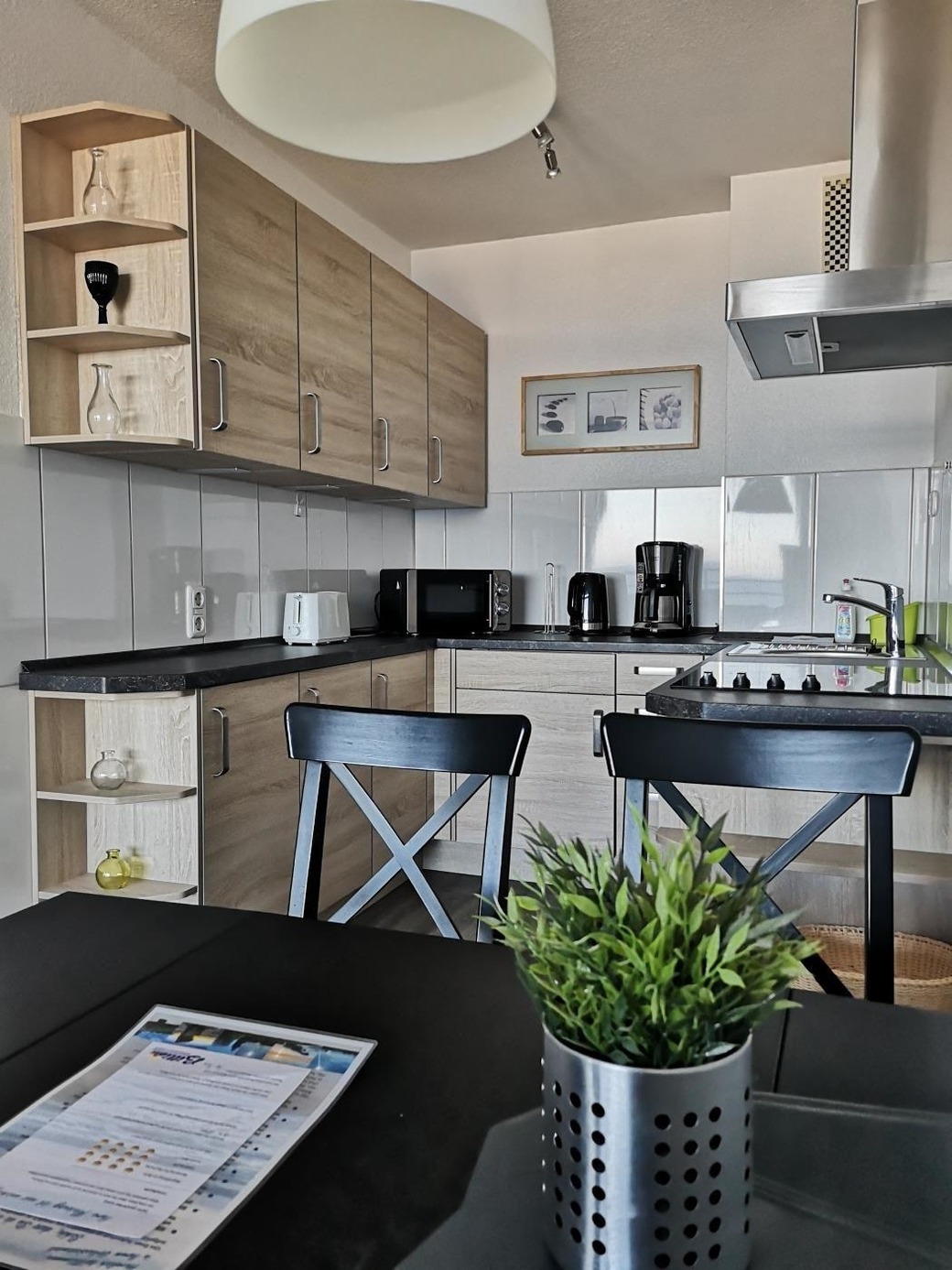 Mit dem Fahrstuhl oder auch mit der Treppe kommen Sie in jede Etage. Die Wohnung 42 befindet sich in der 4. Etage und hat herrlichen Seeblick. Das Wohnzimmer hat eine gemütliche Sitzecke, welche man zu einer Schlafmöglichkeit wandeln kann, Essecke und natürlich einen Balkon sind auch vorhanden. Das Bad enthält eine Dusche und WC. Im Schlafzimmer befinden sich zwei Einzelbetten. Die Küche ist ausgestattet mit Geschirrspüler etc. und hat eine Durchreiche zum Essbereich im Wohnzimmer.
