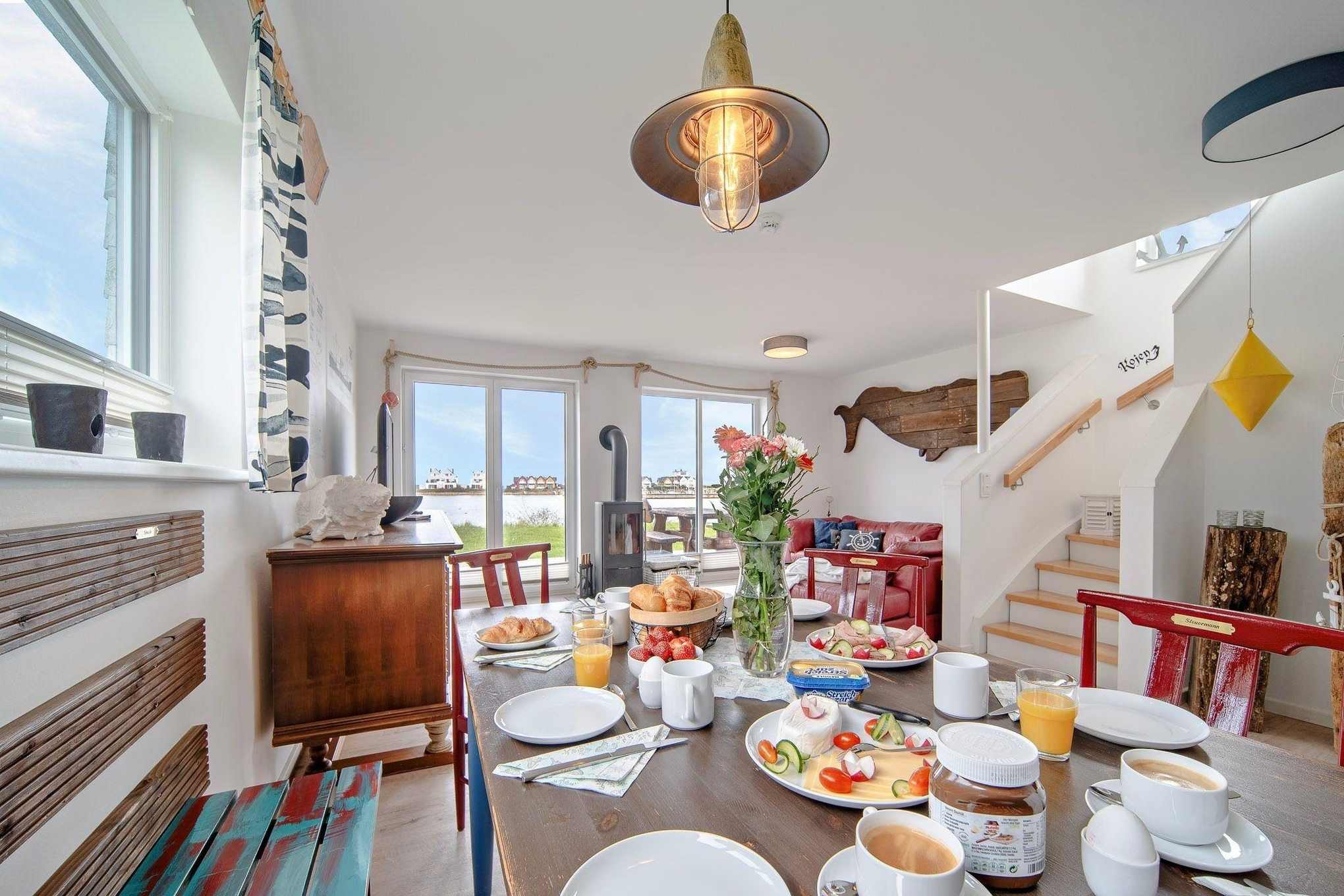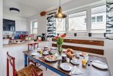 In der farbenfrohen und vollausgestatteten Küche können Sie gemeinsam mit Ihren Liebsten köstliche Mahlzeiten zubereiten und dabei den Blick auf das Wasser genießen. Lassen Sie sich von der inspirierenden Umgebung zu kulinarischen Kreationen hinreisen und verbringen Sie genussvolle Stunden am Esszimmertisch.