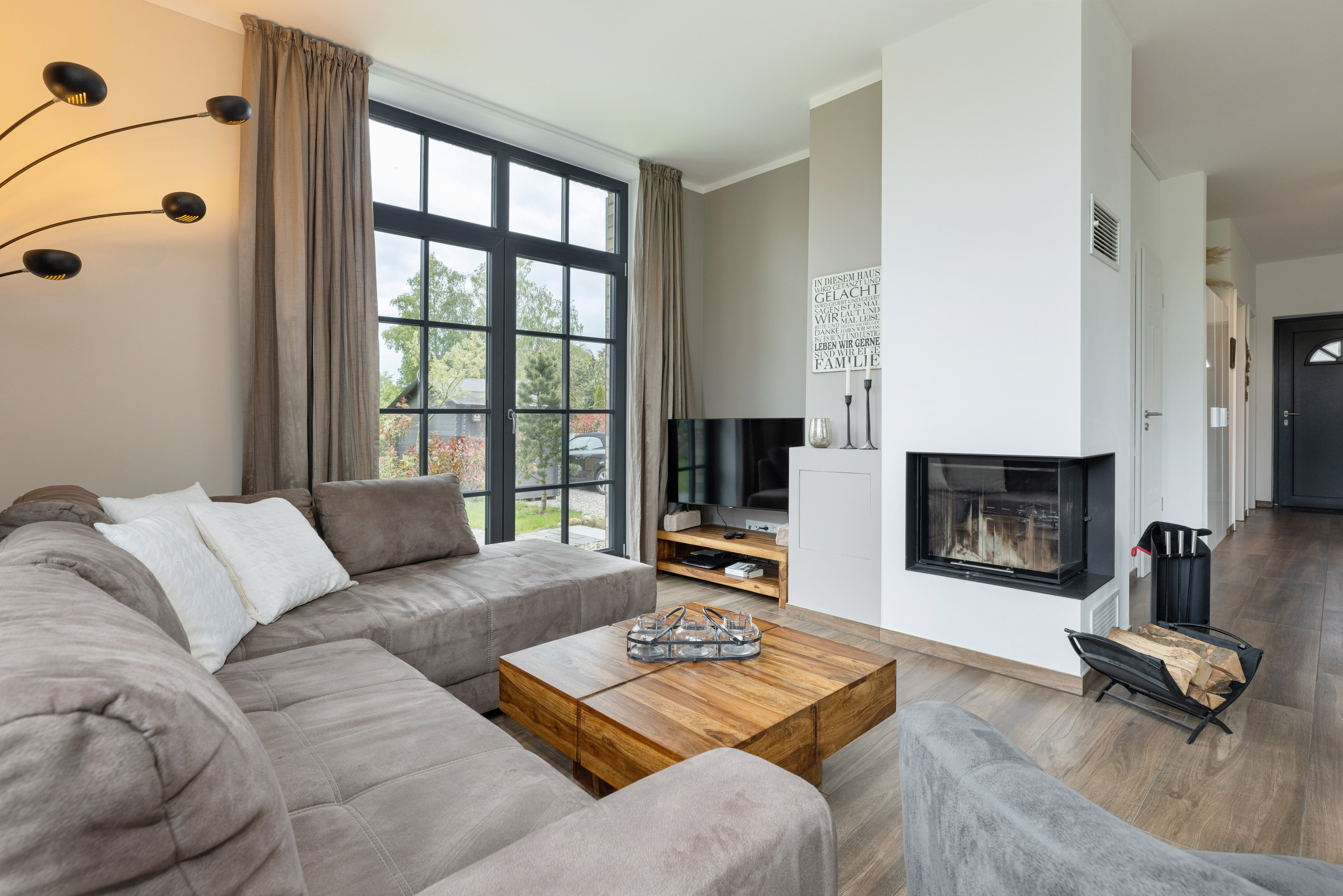 Die moderne, großzügige Küche ist offen angelegt und mit allem ausgestattet, was man benötigt, um nicht nur den schnellen Snack für zwischendurch, sondern auch das Mehrgangmenü am Abend zubereiten zu können. Großzügige Fensterfronten, ein komfortabler Esstisch und eine gemütliche Sitzgruppe vor dem Kamin prägen den lichtdurchfluteten Wohnbereich. Und was gibt es Schöneres an kühlen Abenden, als das Flackern von brennenden Holzscheiten im Kamin! Wer die raue Schönheit der Küste in Herbst und Winter liebt, weiß die Wärme und Behaglichkeit eines Kaminfeuers zu schätzen. Denken Sie daher bei Ihrer Buchung am besten gleich daran, Kaminholz für den ersten Abend zu bestellen.