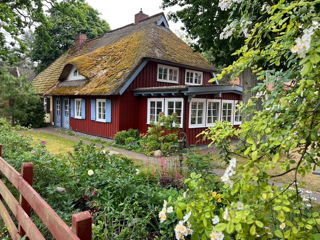 Wohlfühlen in Ellas Kate, träumen in der hellen schönen Darßveranda, im Schwalbennest unterm Dach oder auf der Terrasse mit Garten unter der großen Eiche. Das schöne Haus in alter Holzbauweise, Baujahr ca. 1890, wurde 1998 auf traditionelle Weise saniert und bietet allen Komfort für Liebhaber der skandinavischen Lebensart.