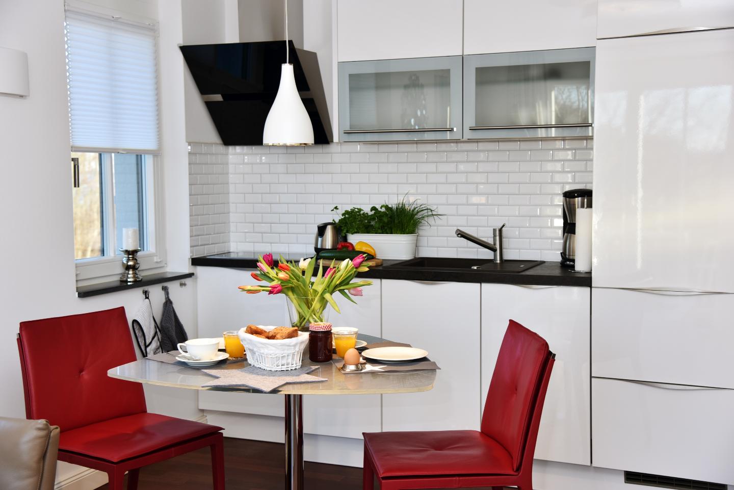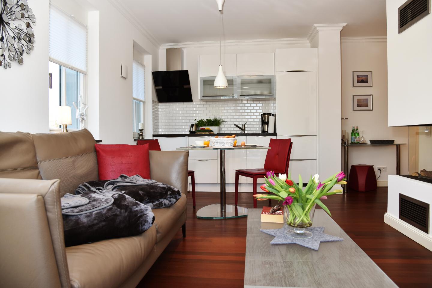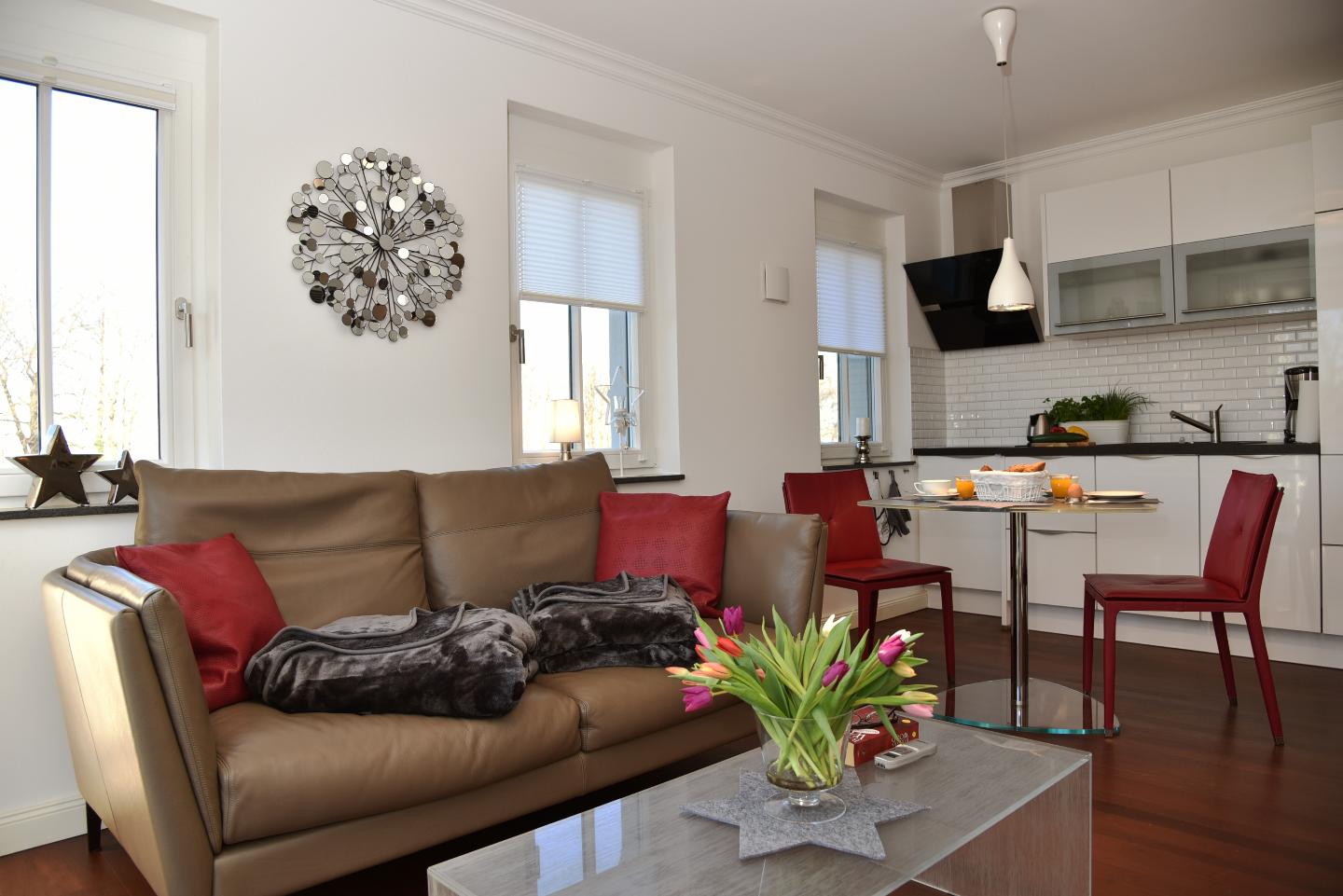 Die luxuriösen Feriensuiten haben ein bis drei Schlafzimmer und sind nach neuesten Standards ausgestattet, einige Balkone erlauben sogar einen einmaligen Ausblick auf die Ostsee.