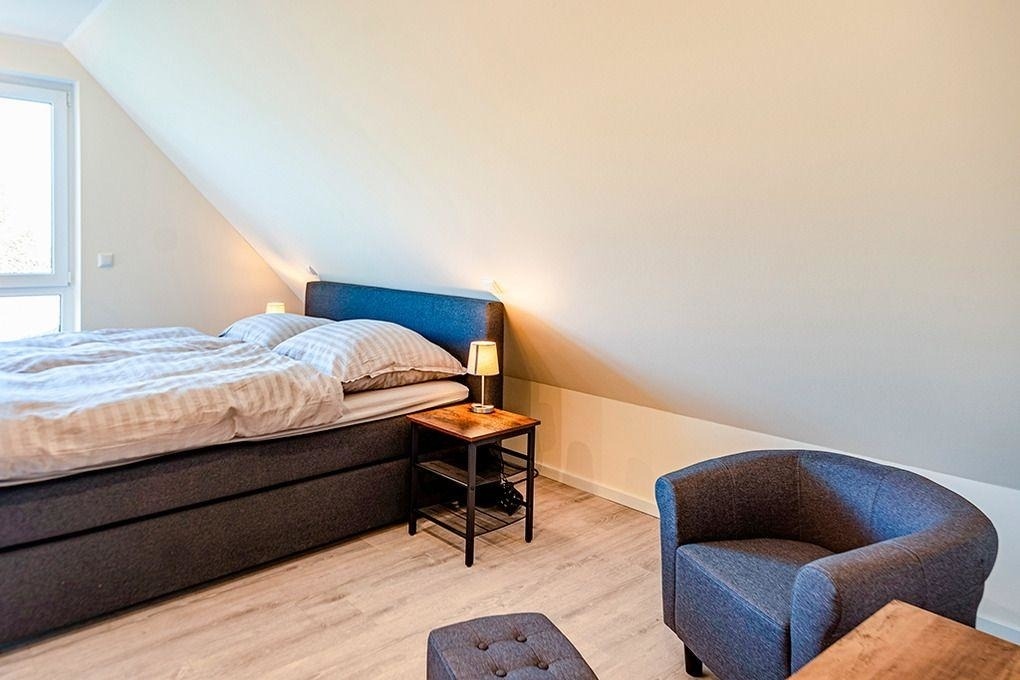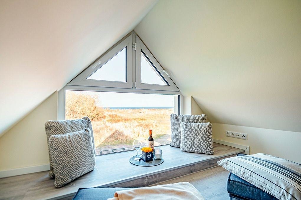 2. Etage mit Schrägen: 2-Bettzimmer (2 Schlafsessel, jeweils für 1 Person) und einem schönen Meerblick.