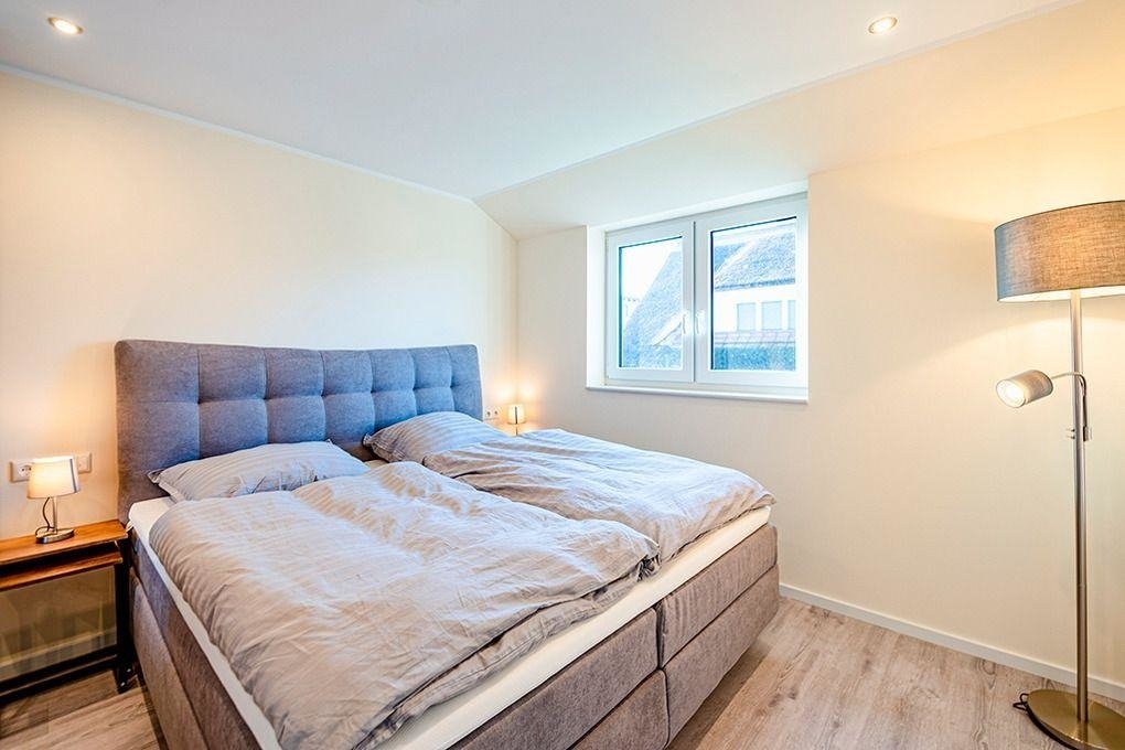Exklusive, neu erbaute Doppelhaushälfte mit Reetdach, Kaminofen und Sauna und eingeschränktem Meerblick. Großzügiges Nichtraucher-Ferienhaus mit komfortabler Ausstattung und hochwertiger Möblierung.