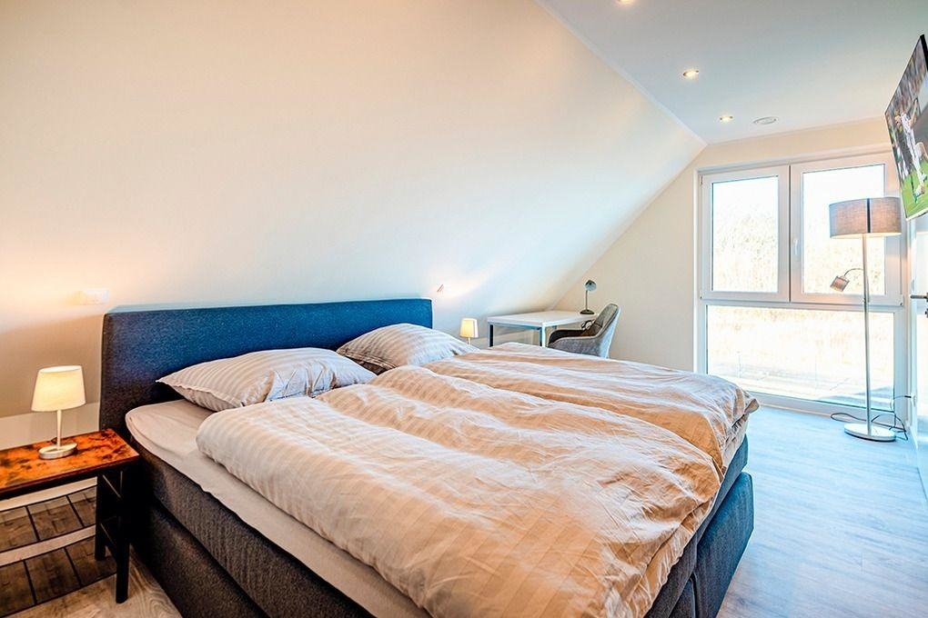 1. Etage: Doppelzimmer mit Smart-TV, Bad/WC. Zwei Doppelzimmer, davon eins mit Smart-TV. Weiteres Bad mit Badewanne und separater Dusche, einem Doppelwaschtisch und WC.