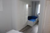 Die 40 m² große Ferienwohnung (Ostseite) befindet sich auf der 1. Etage im Haus Schleswig und bietet Raum für max. 5 Personen. Ein Doppelbett, ein Einzelbett im separaten Schlafraum bieten Schlafplätze für 3 Personen. Ein großes Schlafsofa kann zu 2 weiteren Schlafplätzen umgebaut werden.