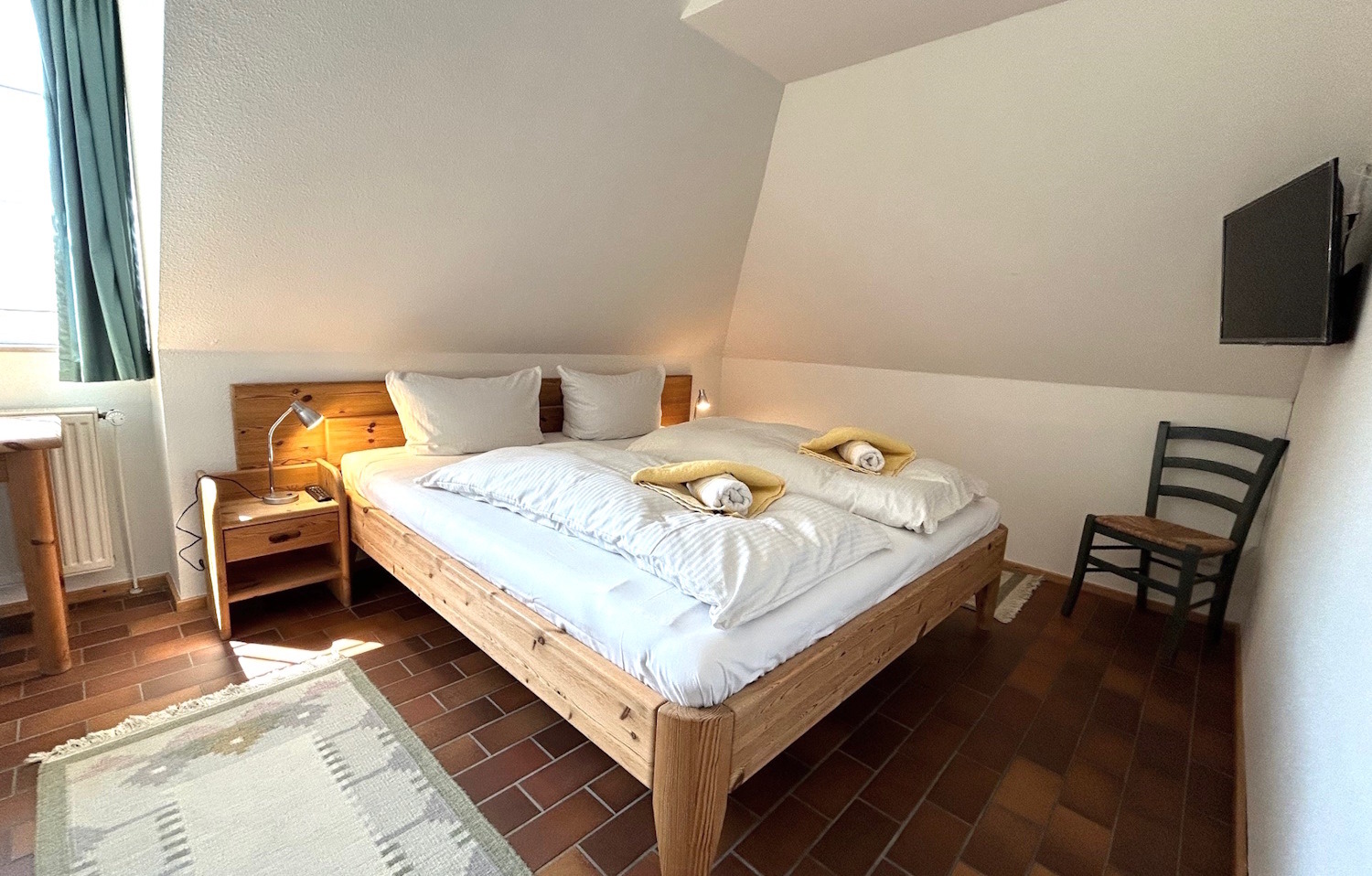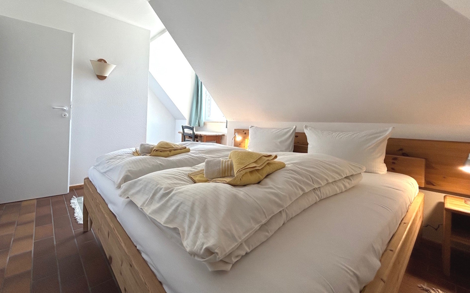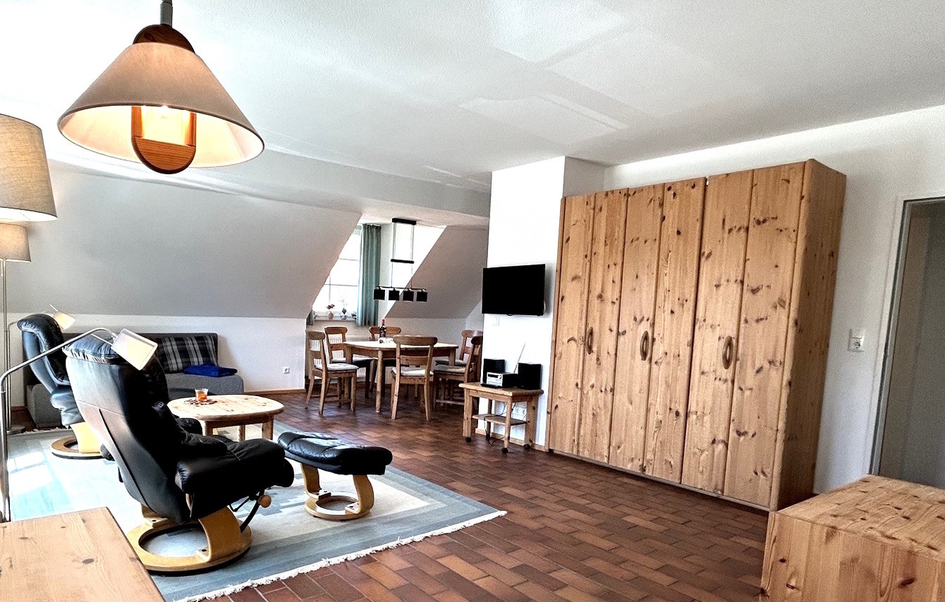 Die Ferienwohnungen bestehen aus zwei Zimmern mit 54 qm für zwei bis vier Personen oder drei Zimmer-Maisonette mit 75 qm für zwei bis sechs Personen und sind voll möbliert.
