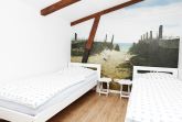 Die Ferienwohnung Landleev auf unserem Bauernhof auf Fehmarn ist ca. 73qm groß und bietet damit ordentlich Platz für bis zu 4 Personen plus ein Kleinkind (Babybett). Sie geht über zwei Etagen (Erdgeschoss und 1. Etage). Eure zwei Schlafzimmer sind mit einem Doppelbett und zwei Einzelbetten ausgestattet. Optional stellen wir noch ein Babybett. Ein gemütliches Wohnzimmer mit Essecke, eine kleine Küche und ein schickes Bad gehören natürlich auch dazu, außerdem habt Ihr eine Südterrasse. Auch auf dem gesamten Hofgelände findet Ihr genügend Lieblingsplätze für Groß und Klein. Bei kühlerem Wetter könnt Ihr Euch in der Infrarotkabine (Wohlfühlsauna) in unserer Scheune aufwärmen. Auf die Kleinen warten unsere Dinocars und andere Fahrzeuge, ein Spielplatz und Trampolin, eine Spielhalle, Tischkicker, Tischtennis, ein Spielzimmer und ein riesiger Garten zum Austoben. Außerdem freuen sich unsere Ziegen und Kaninchen auf einen Snack oder eine Streicheleinheit. Also: Auf gehts, einfach mal stranden!