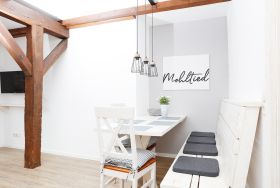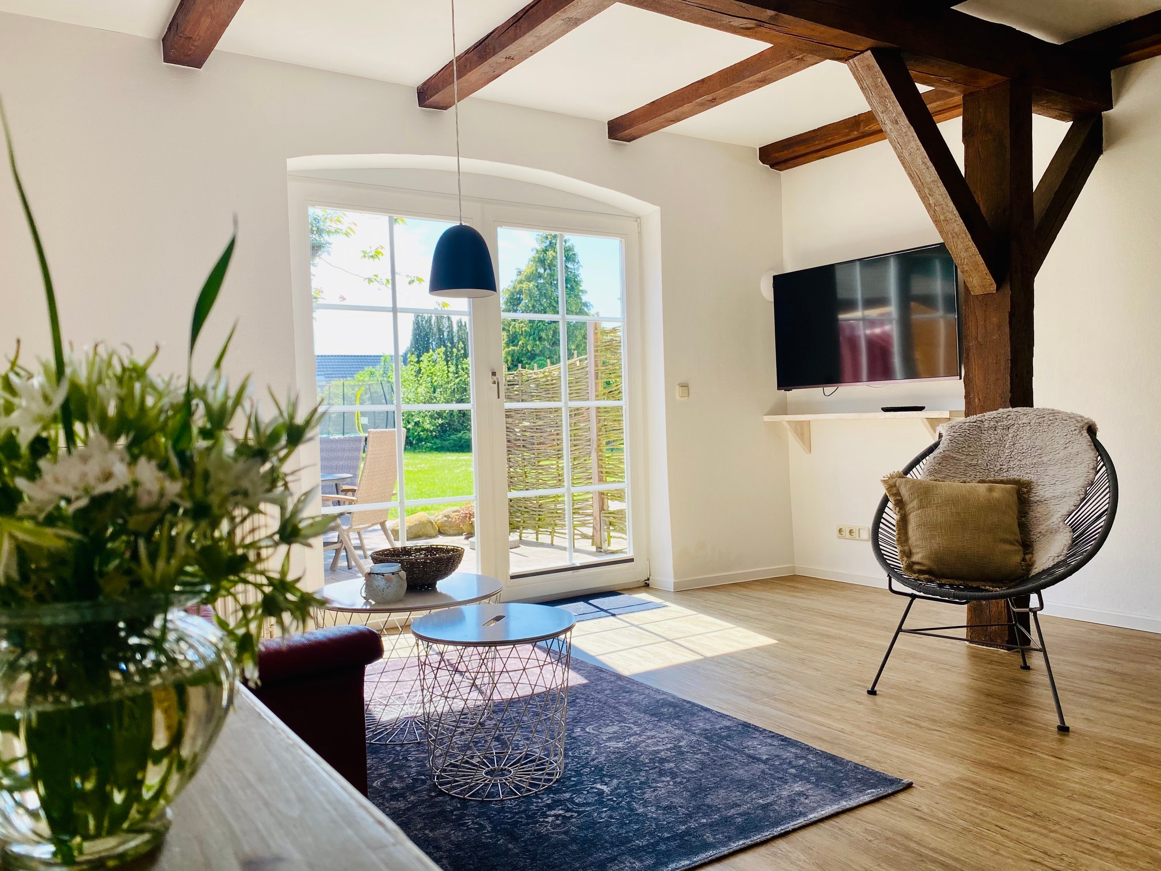 Einfach mal stranden - in der Hofbude Landleev auf unserem familienfreundlichen Bauernhof Hofbude Fehmarn auf der Ostseeinsel Fehmarn. Die Ferienwohnung ist mit ihren ursprünglichen Holzbalken besonders gemütlich. Auch auf unserem Hof findet Ihr viele Lieblingsplätze zum Entspannen oder Herumtoben.