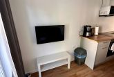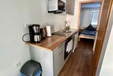 Im Nebenhaus dahinter erwarten sie vier Sparferienwohnungen mit einer Größe von 22qm, Schlafplätze für bis zu 3 Personen und kleiner Terrasse. Hier gilt das Motto: klein aber fein und ist für alle die gedacht, die viel unterwegs sind und fast nur zum Schlafen in die Unterkunft kommen. Eine Sparwohnung, Nr.1 ist mit Einzelbetten und drei, Nr.2, 3 und 4, mit Doppelbett ausgestattet.