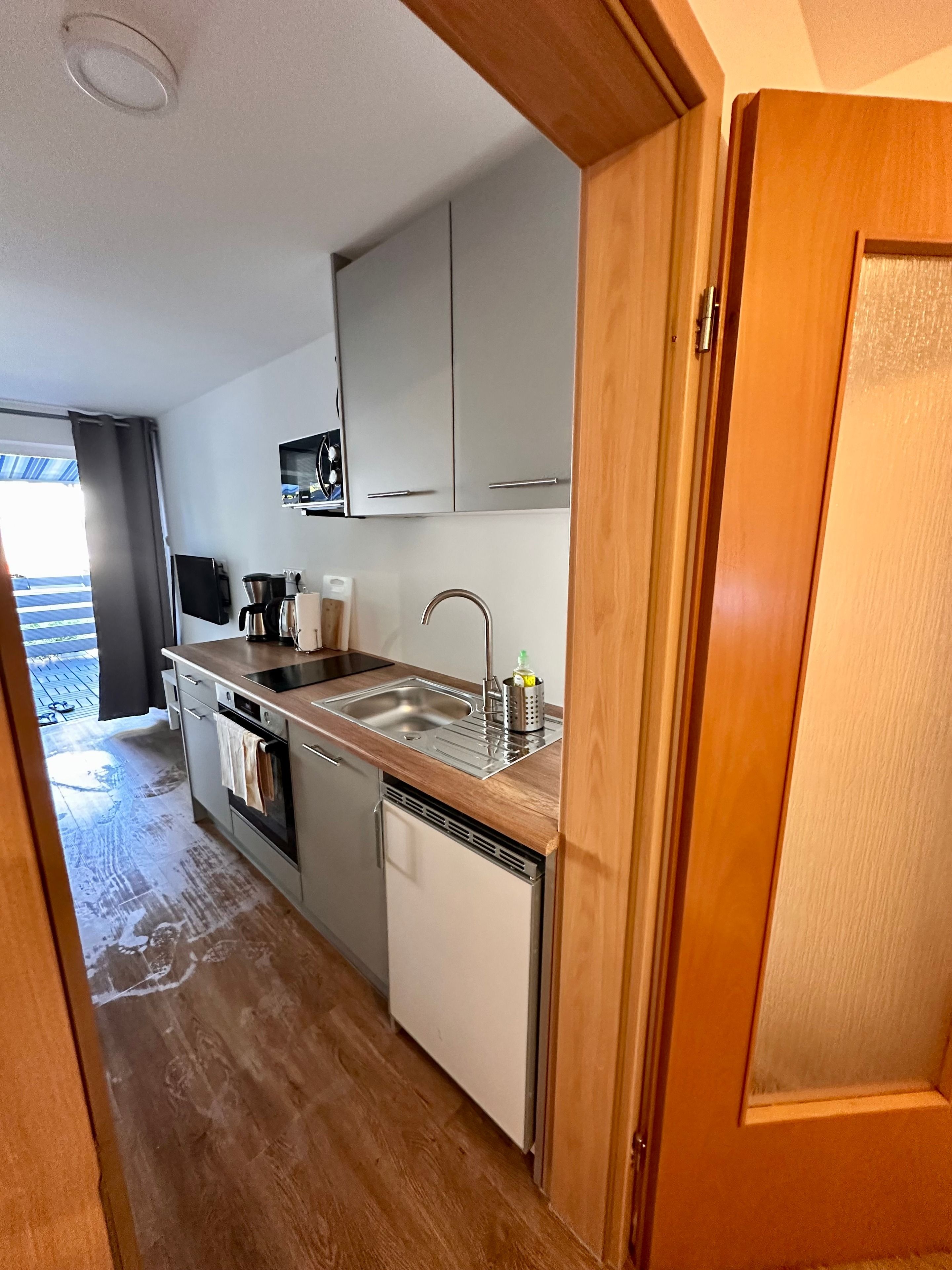 Im Nebenhaus dahinter erwarten sie vier Sparferienwohnungen mit einer Größe von 22qm, Schlafplätze für bis zu 3 Personen und kleiner Terrasse. Hier gilt das Motto: klein aber fein und ist für alle die gedacht, die viel unterwegs sind und fast nur zum Schlafen in die Unterkunft kommen. Eine Sparwohnung, Nr.1 ist mit Einzelbetten und drei, Nr.2, 3 und 4, mit Doppelbett ausgestattet.