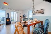 Das Herzstück des Ferienhauses Am MEER by Seeblick Ferien ORO ist der offen gestaltete Wohnbereich im Erdgeschoss. Hier können Sie den direkten Meerblick und gemütliche Kaminabende in einer stilvollen Kombination aus Ess- und Wohnzimmer genießen. Durch die großzügigen Fensterfronten eröffnet sich Ihnen ein einmaliger Ausblick auf die Ostsee, der zu jeder Tageszeit begeistert.