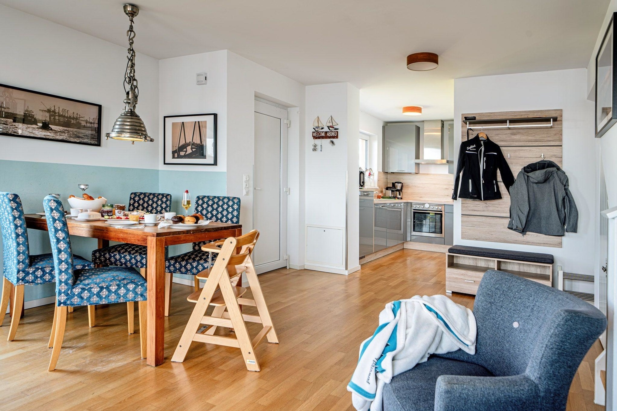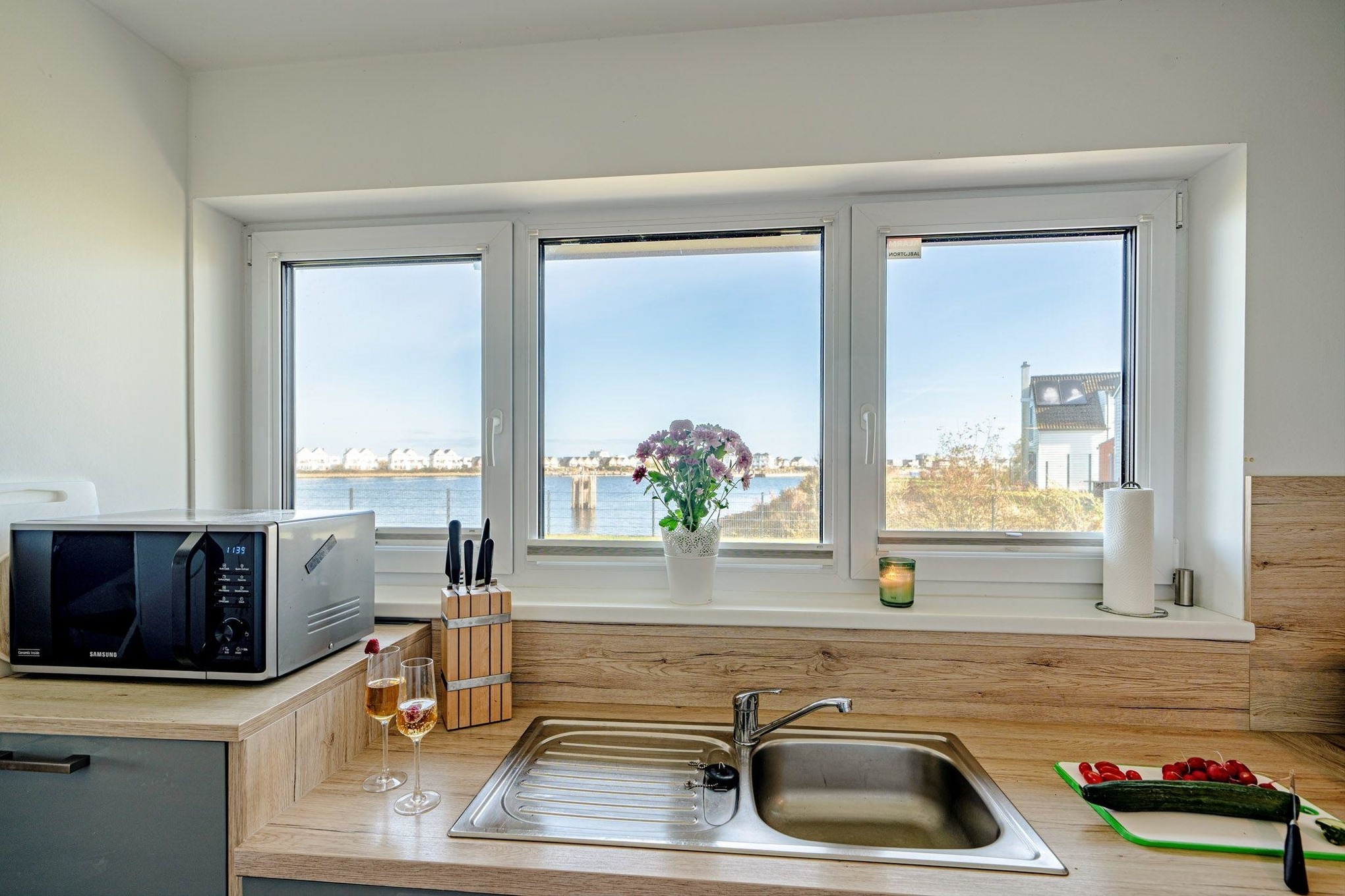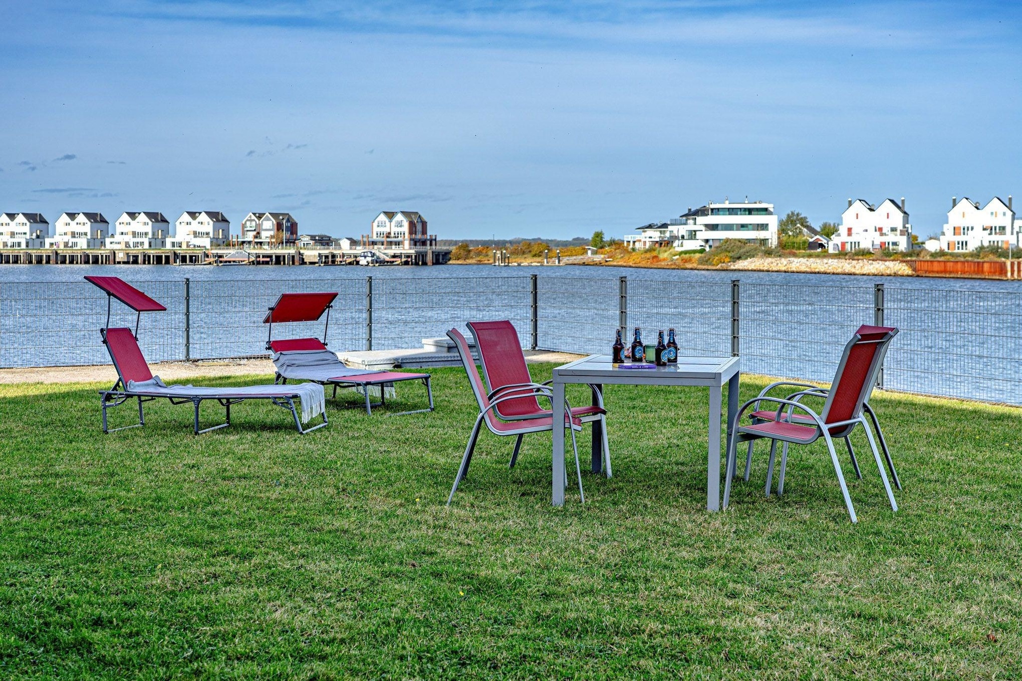 Das Ferienhaus Am MEER by Seeblick Ferien ORO verfügt über eine Terrasse vor und hinter dem Haus. Von hier aus können Sie das „Hafenkino“ mit vorbeifahrenden Segel- und Sportbooten hautnah erleben. Der eigene Garten lädt zum Verweilen und Spielen ein – der perfekte Ort für erholsame Stunden im Freien.