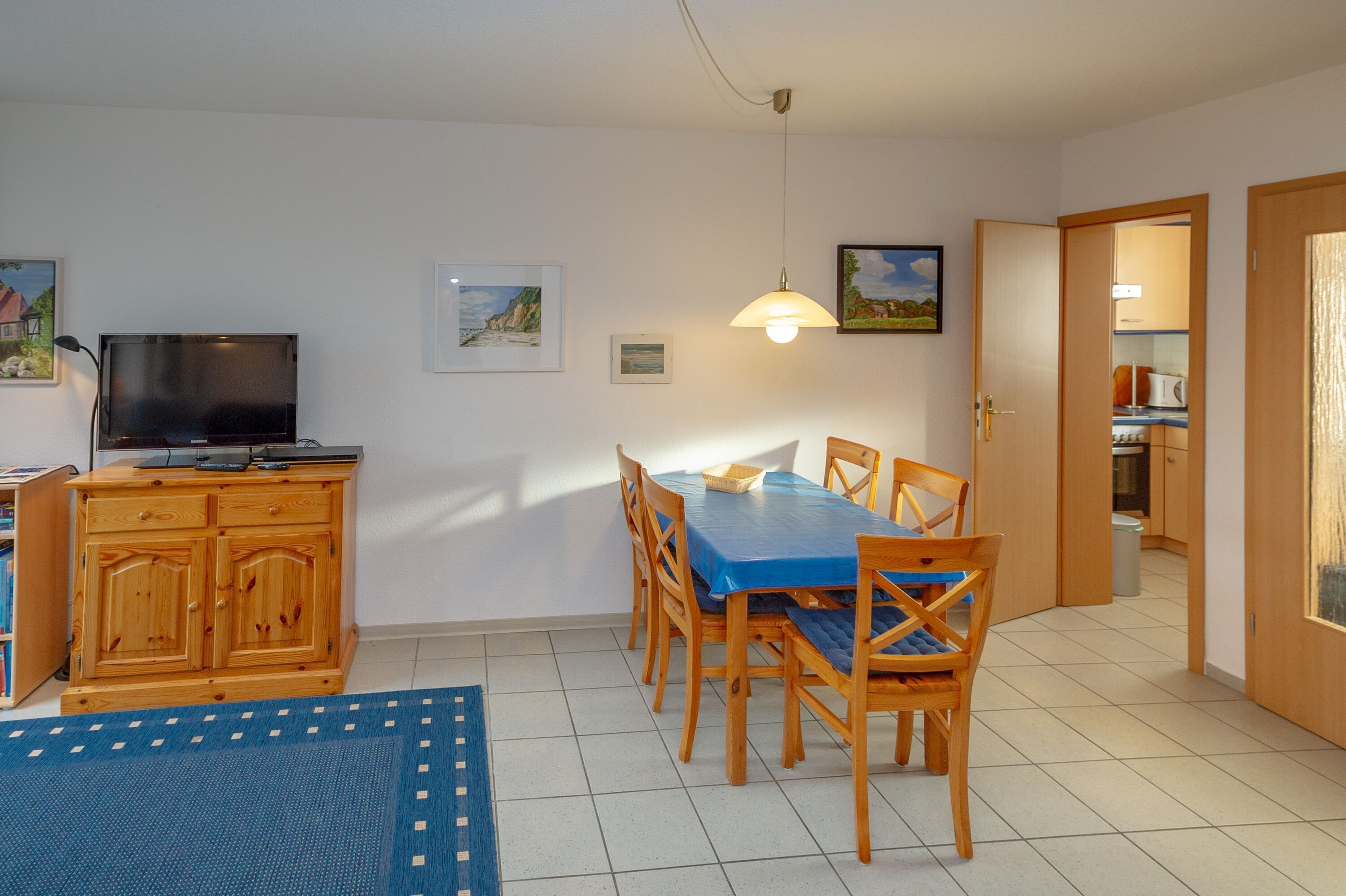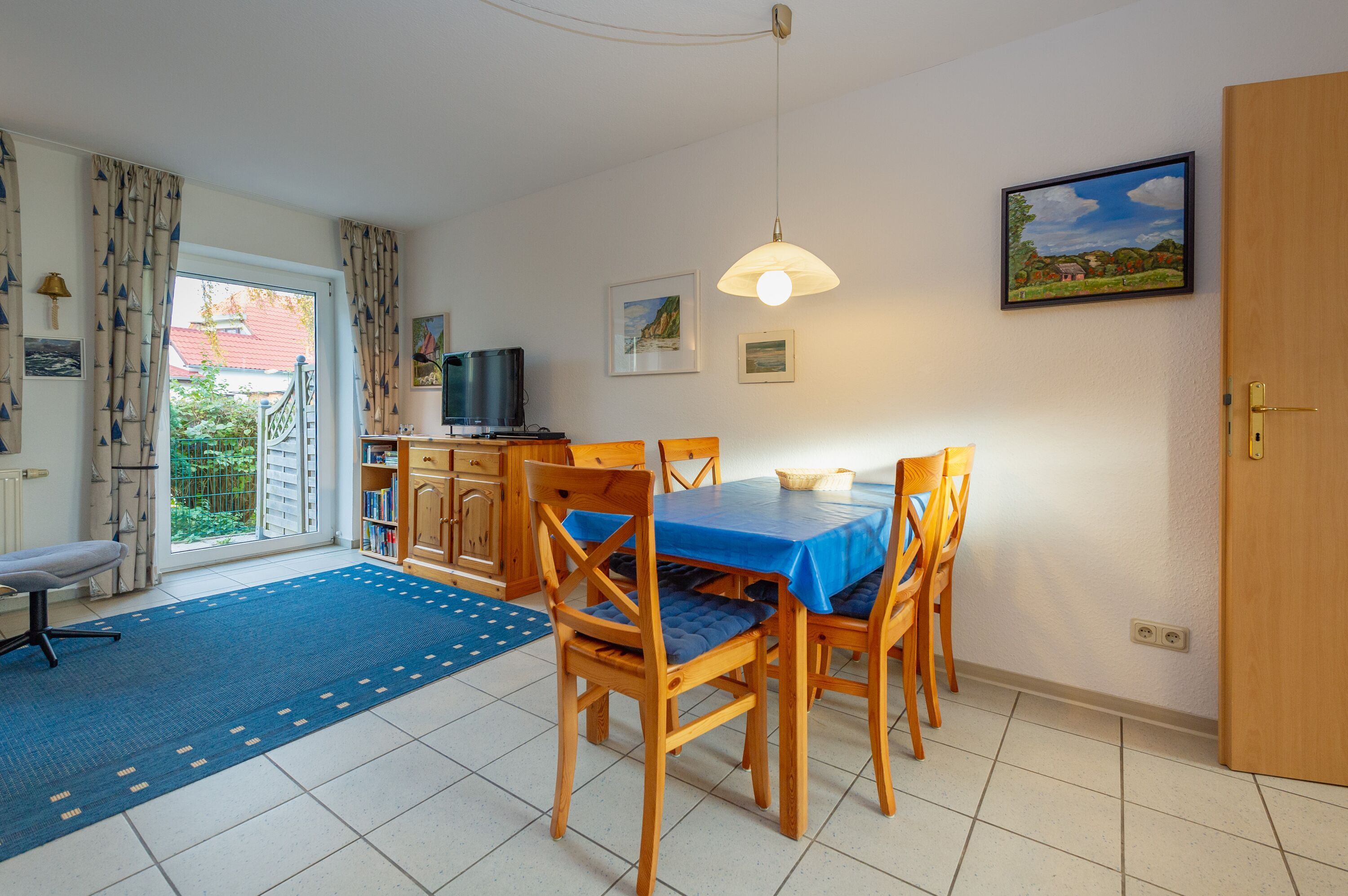 Speisen können Sie entweder am großen Esstisch im Wohnzimmer oder ganz nach Belieben auch draußen auf der saisonal möblierten Terrasse. In Lobbe und der näheren Umgebung gibt es darüber hinaus mehrere empfehlenswerte Lokale, wo sich eine Einkehr lohnt.
