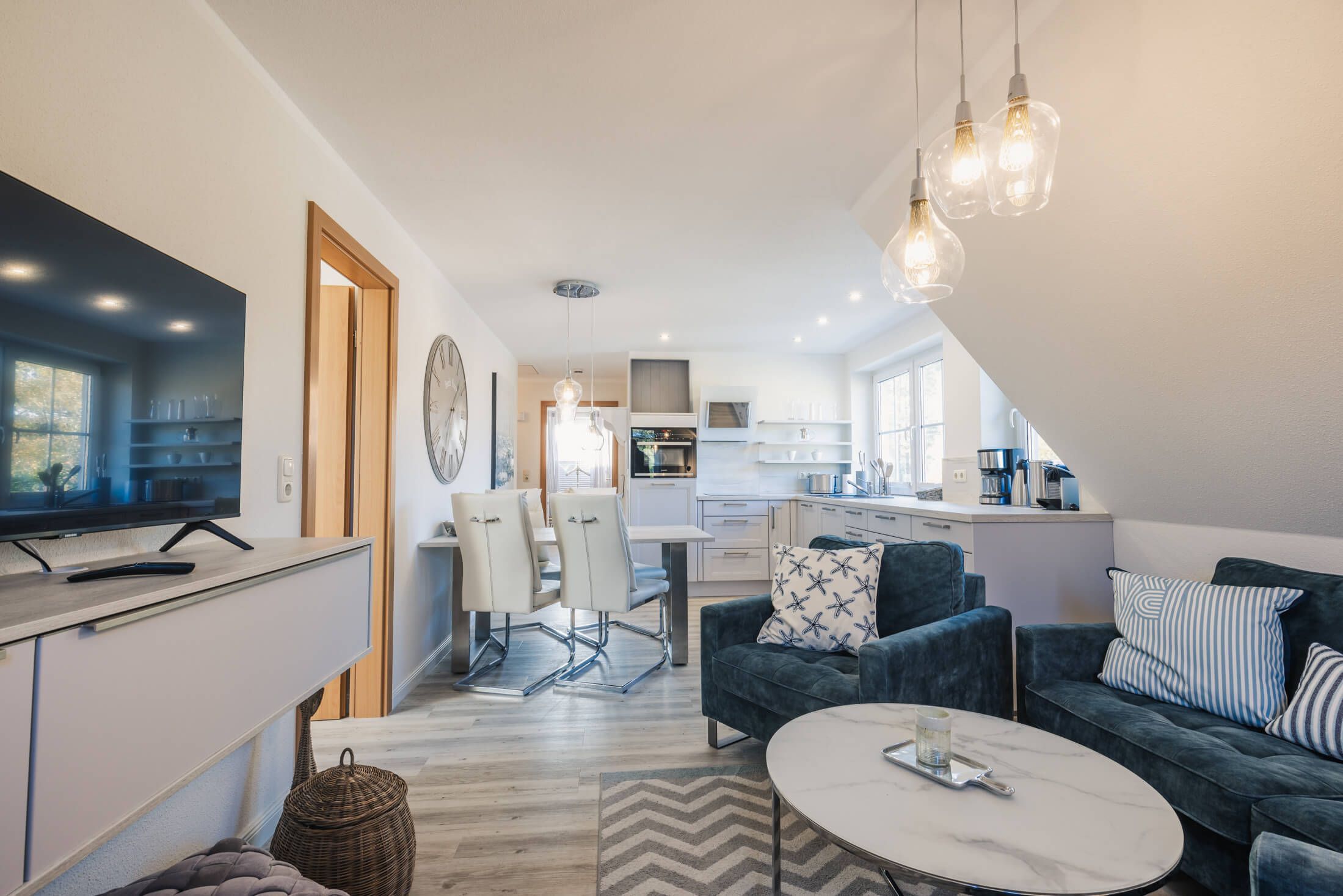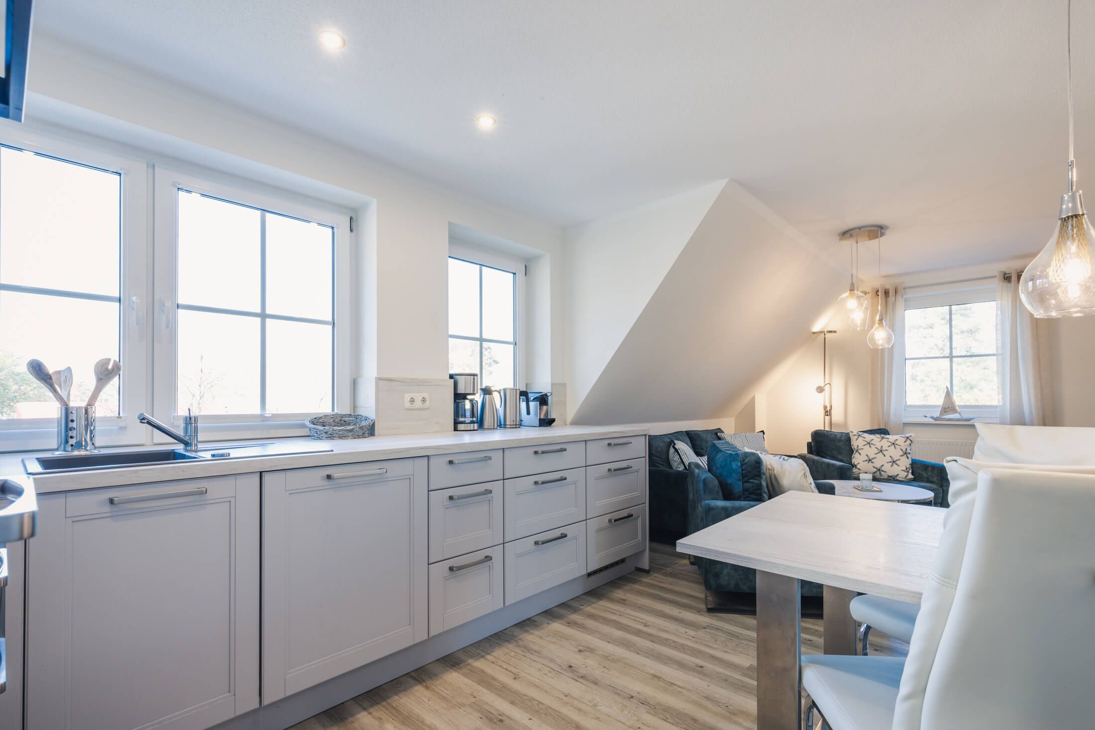 Entspannen Sie in unserer gemütlichen Ferienwohnung mit zwei Schlafzimmern, ideal für Paare und Familie bis zu vier Personen. Die beiden Schlafzimmer und der gemütliche Wohnbereich schaffen eine angenehme Atmosphäre. Die voll ausgestattete offene Küche lädt zum gemeinsamen Kochen ein. Genießen Sie den Blick auf die Umgebung und lassen Sie den Alltag hinter sich. Die Lage unserer Ferienwohnung in Zingst ist unschlagbar: In erster Reihe, nur wenige Schritte vom Strand entfernt. Unsere Ferienwohnung in Zingst ist der perfekte Ausgangspunkt für ausgedehnte Spaziergänge am Strand, Fahrradtouren durch die einzigartige Naturlandschaft oder erlebnisreiche Wanderungen im Nationalpark Vorpommersche Boddenlandschaft. Ihr vierbeiniger Freund ist bei uns ebenfalls herzlich willkommen. Ein Strandkorb (Strandaufgang 26) steht Ihnen gegen eine geringe Gebühr zur Verfügung, um die Ostseeluft in vollen Zügen zu genießen.
