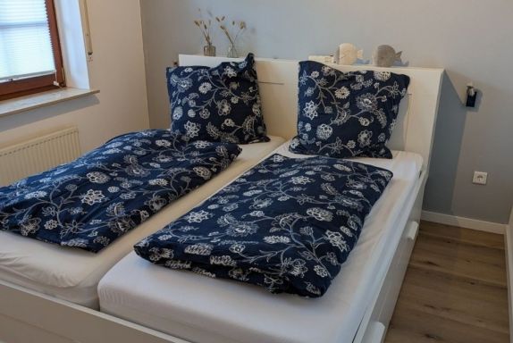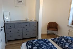 Unsere Erdgeschosswohnung mit einer Wohnfläche von ca. 70 m², für max. 4 Personen (+ Kleinkind), liegt in einer ruhigen Sackgassenlage. Das Meer, Restaurants, Einkaufsmöglichkeiten und den Bäcker erreichen Sie in wenigen Gehminuten. Die Wohnung verfügt über zwei Schlafzimmer, davon ist ein Schlafzimmer mit einem großem 180x200 cm Bett ausgestattet und das andere Schlafzimmer verfügt über zwei 90x200 cm Betten. Ebenso ist ein Gitterbett vorhanden sowie ein Kinderhochstuhl. Das Highlight der Wohnung ist der schöne Wintergarten. Desweiteren finden Sie eine vollausgestatte Küche sowie ein Tageslichtbad vor. Mit Rücksicht auf die nicht rauchenden Feriengäste und Allergiker haben wir die Ferienwohnung zur rauchfreien und tierfreien Zone erklärt. Selbstverständlich ist das Rauchen auf dem Balkon gestattet. Ein Stellplatz für Ihr Fahrzeug ist auf dem Grundstück vorhanden. Ihre Fahrräder können Sie in die zum Haus gehörende Garage abstellen. Waschmaschine und Trockner sind per Münzeinwurf im Haus vorhanden. WLAN ist kostenfrei nutzbar.AB 2023 KOMPLETT FRISCH RENOVIERT