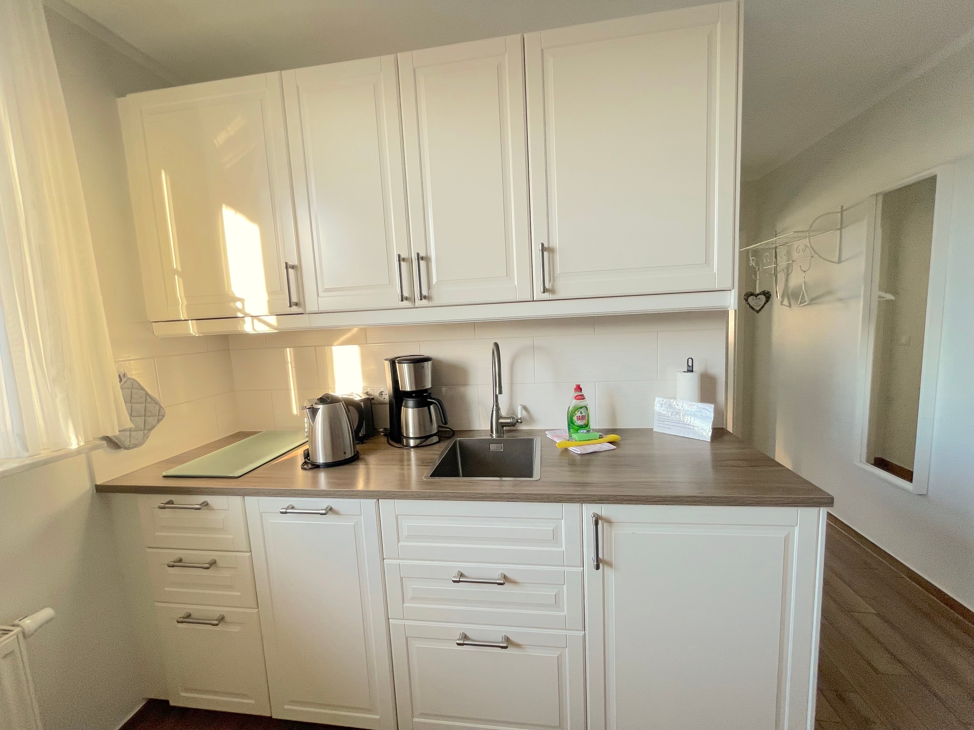 • komplett eingerichtete Küchenzeile mit Geschirrspüler, 2er Induktionskochfeld und Kühlschrank mit Tiefkühlfach