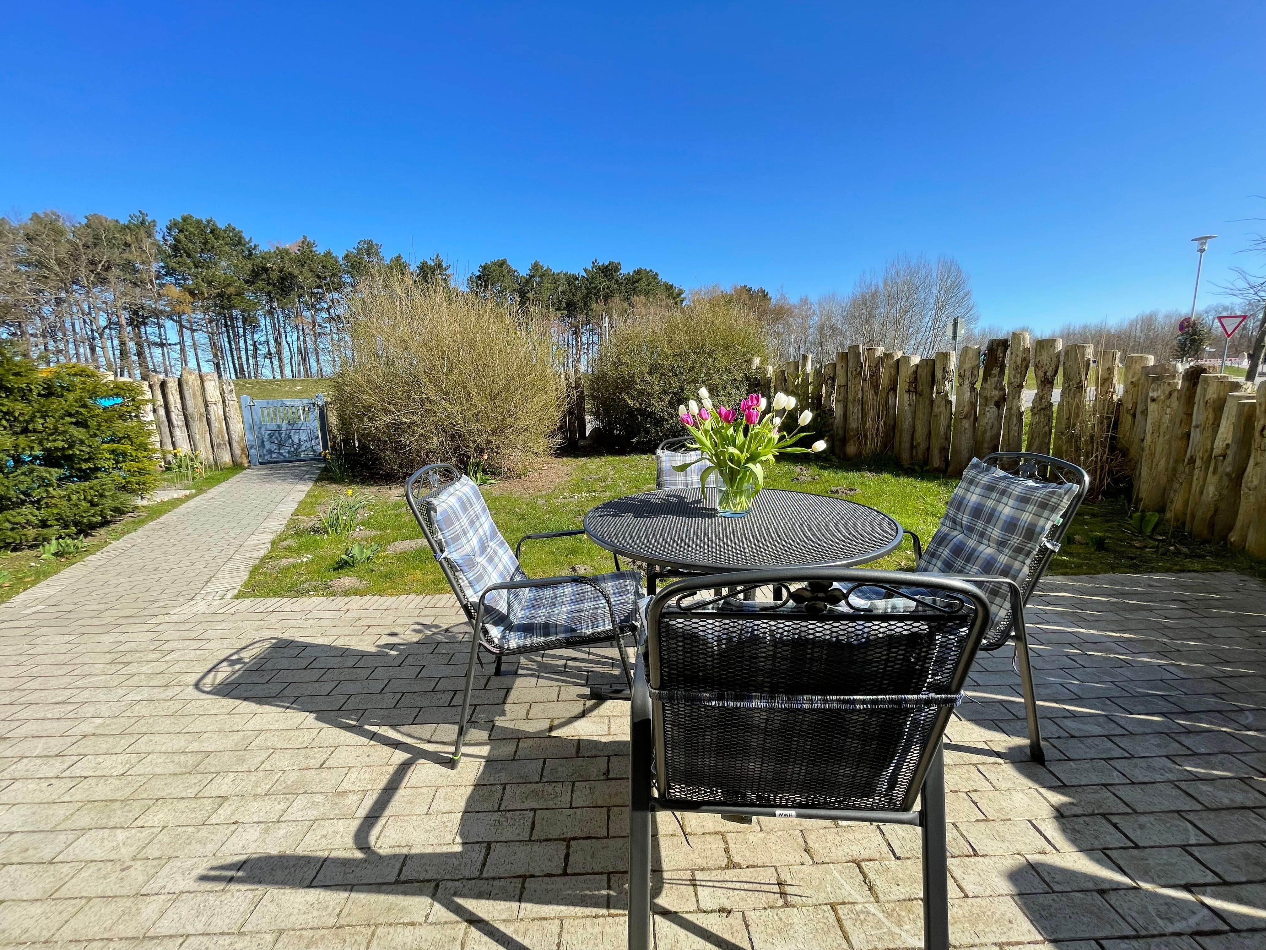 Die Strandwohnung 33 hat einen eigenen Garten mit einer 34m² großen Terrasse.
