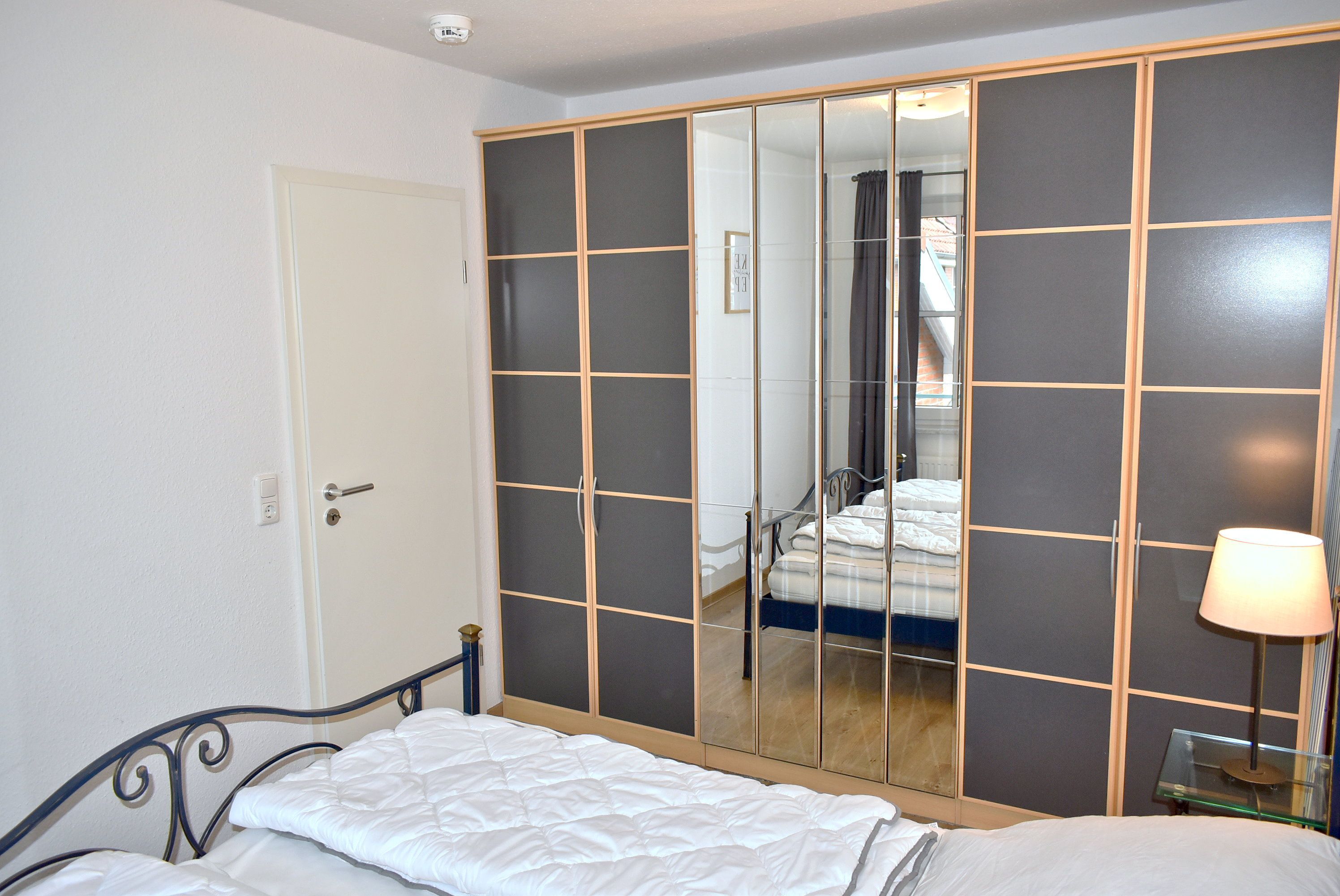 Schlafzimmer 1: 2 Nachttische, Doppelbett 2,00 x 1,80 m, Kleiderschrank, Radiowecker, Spiegel, Staubsauger