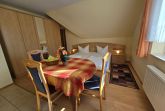 Wohnfläche 33 m², kombinierter Wohn-/ Schlafraum mit Küchenzeile, Farb-TV, Radio (SAT-Anlage), Doppelbett, Aufbettung möglich ( telefon.Anfrage erforderlich ), Bad mit Dusche und WC, Stellplätze für PKW und Fahrräder auf dem Grundstück des Einfamilienhauses mit Ferienwohnungen.