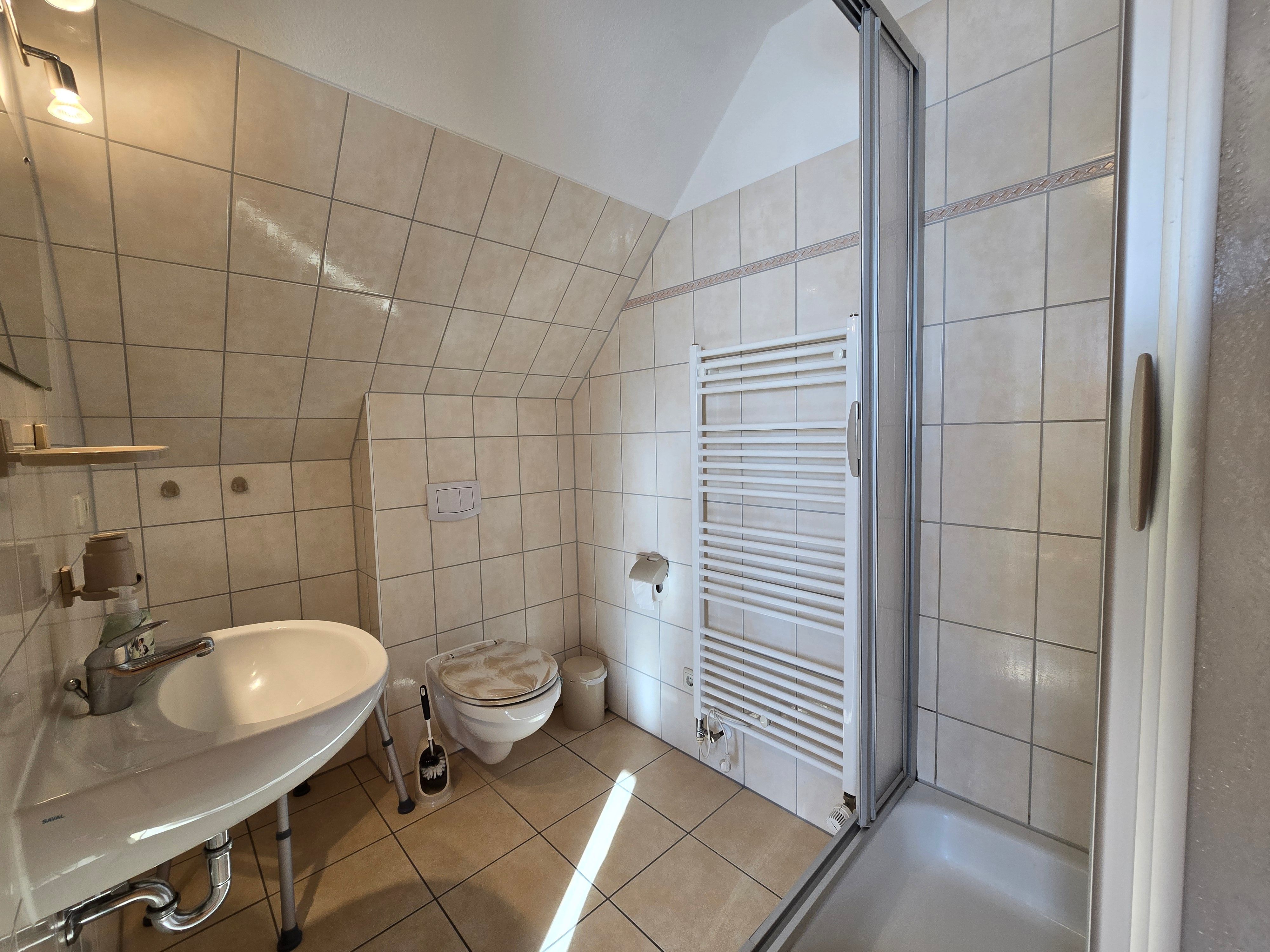• Wohnfläche 33 m², kombinierter Wohn-/ Schlafraum mit Küchenzeile, Farb-TV, Radio (SAT-Anlage), Doppelbett, Schlafcouch - Belegung mit zusätzlicher Person telefonisch nachfragen , Bad mit Dusche und WC, Stellplätze für PKW und Fahrräder auf dem Grundstück des Einfamilienhauses.