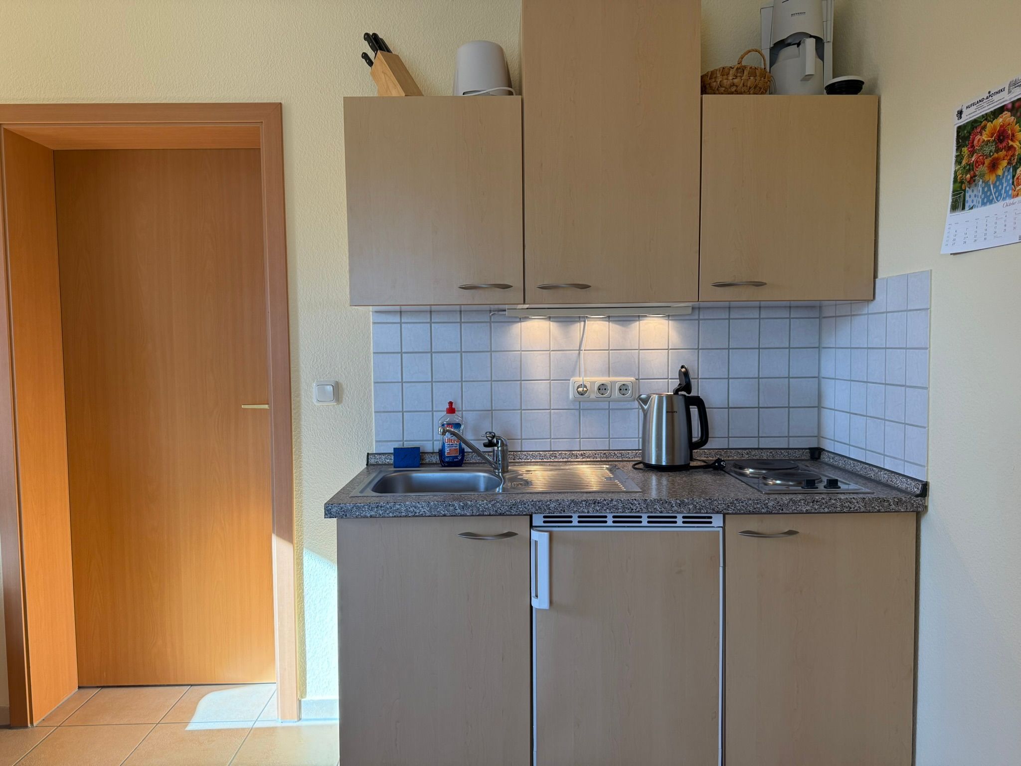 • Wohnfläche 44 m², Wohnraum mit Balkon, Küchenzeile, Sitzgarnitur, Farb-TV, Radio (SAT-Anlage), Sofa mit Schlaffunktion, Schlafraum mit Doppelbett, Bad mit Du. und WC. Stellplätze für PKW (Carport) und Fahrräder auf dem Grundstück des Einfamilienhauses.