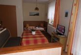 Wohnfläche 44 m², kombinierter Wohn-/ Schlafraum mit Terrasse, Küchenzeile, Sitzgarnitur, Farb-TV, Radio (SAT-Anlage) und zwei getrennten Betten (Schlafcouch), Schlafraum mit Doppelbett. Bad mit Dusche und WC. Stellplätze für einen PKW im Carport und Fahrräder auf dem Grundstück des Einfamilienhauses.