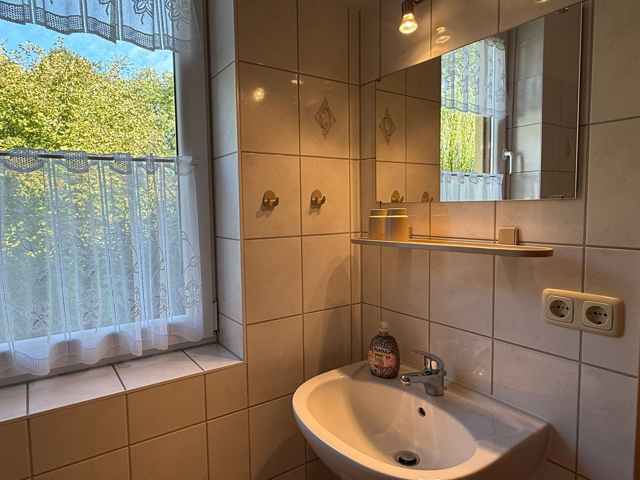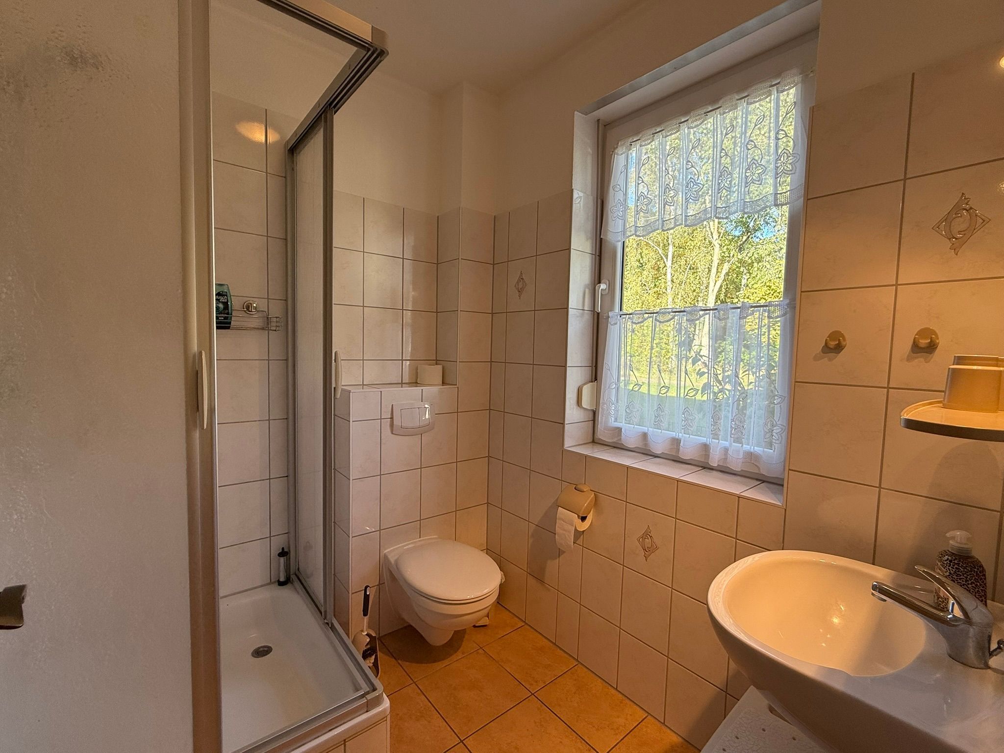 Bad mit Dusche und WC. Stellplatz für PKW ( Carport ) sowie Fahrräder auf dem Grundstück des Hauses.