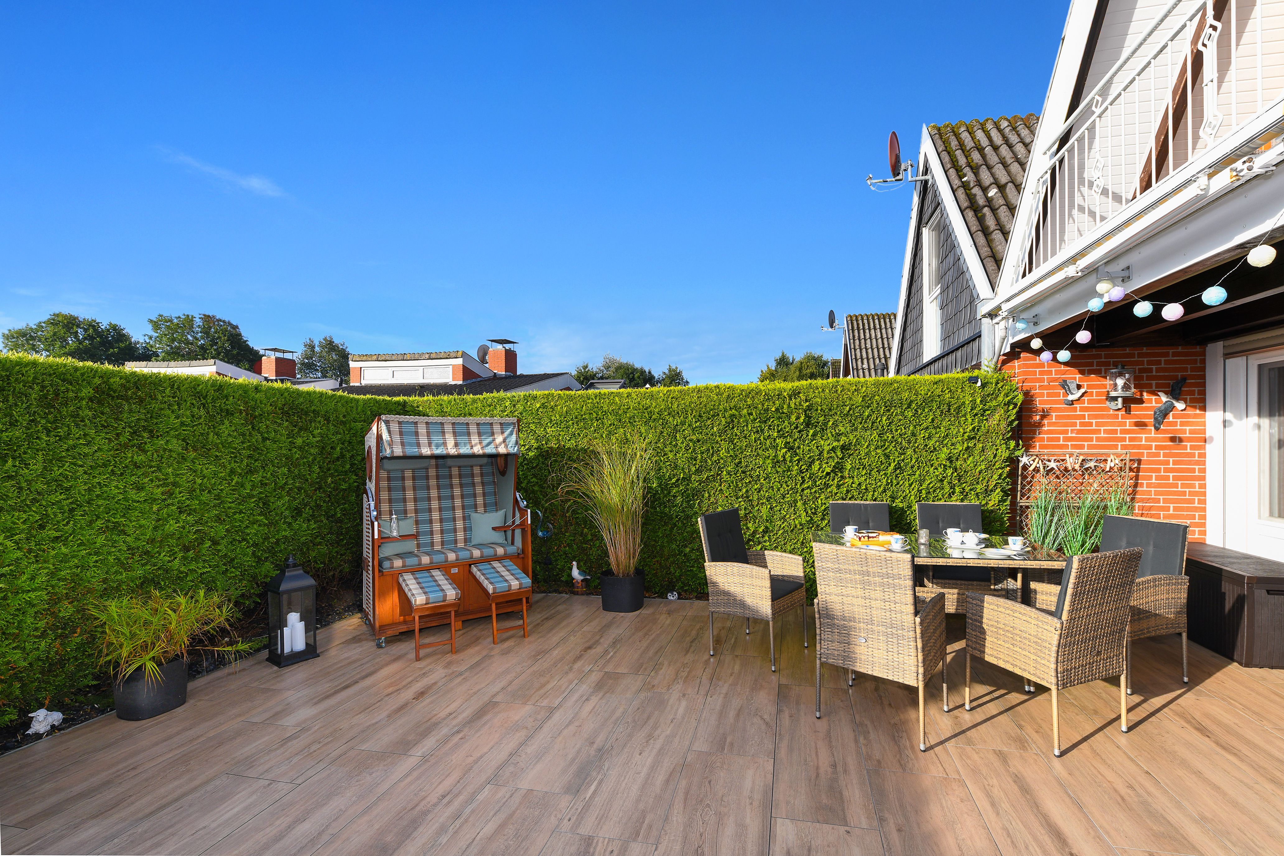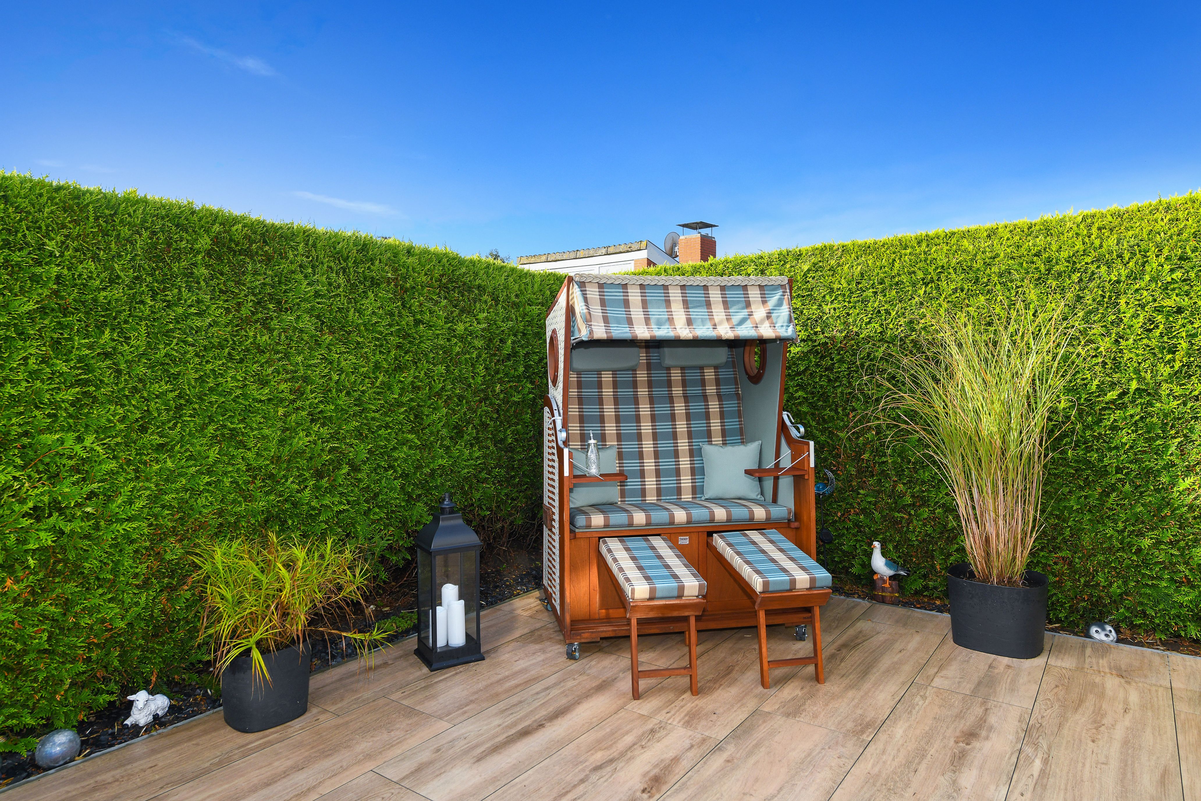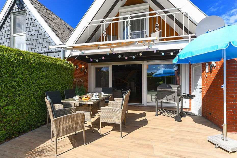 Das Ferienhaus Kleine Möwe ist gemütlich-modern und freundlich gestaltet, sehr komfortabel eingerichtet sowie hervorragend ausgestattet. Es gibt zum Beispiel mit eine richtig tolle moderne Küche, eine sehr schöne möblierte Terrasse mit einer ausfahrbaren Marquise sowie eine Loggia (überdachter Balkon) am Schlafzimmer.
