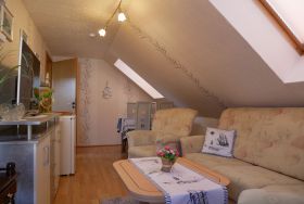 Die 2 Raum Ferienwohnung befindet sich im 1 OG und ist eine Dachgeschoß Wohnung eines Einfamilienhauses im Seebad Trassenheide.