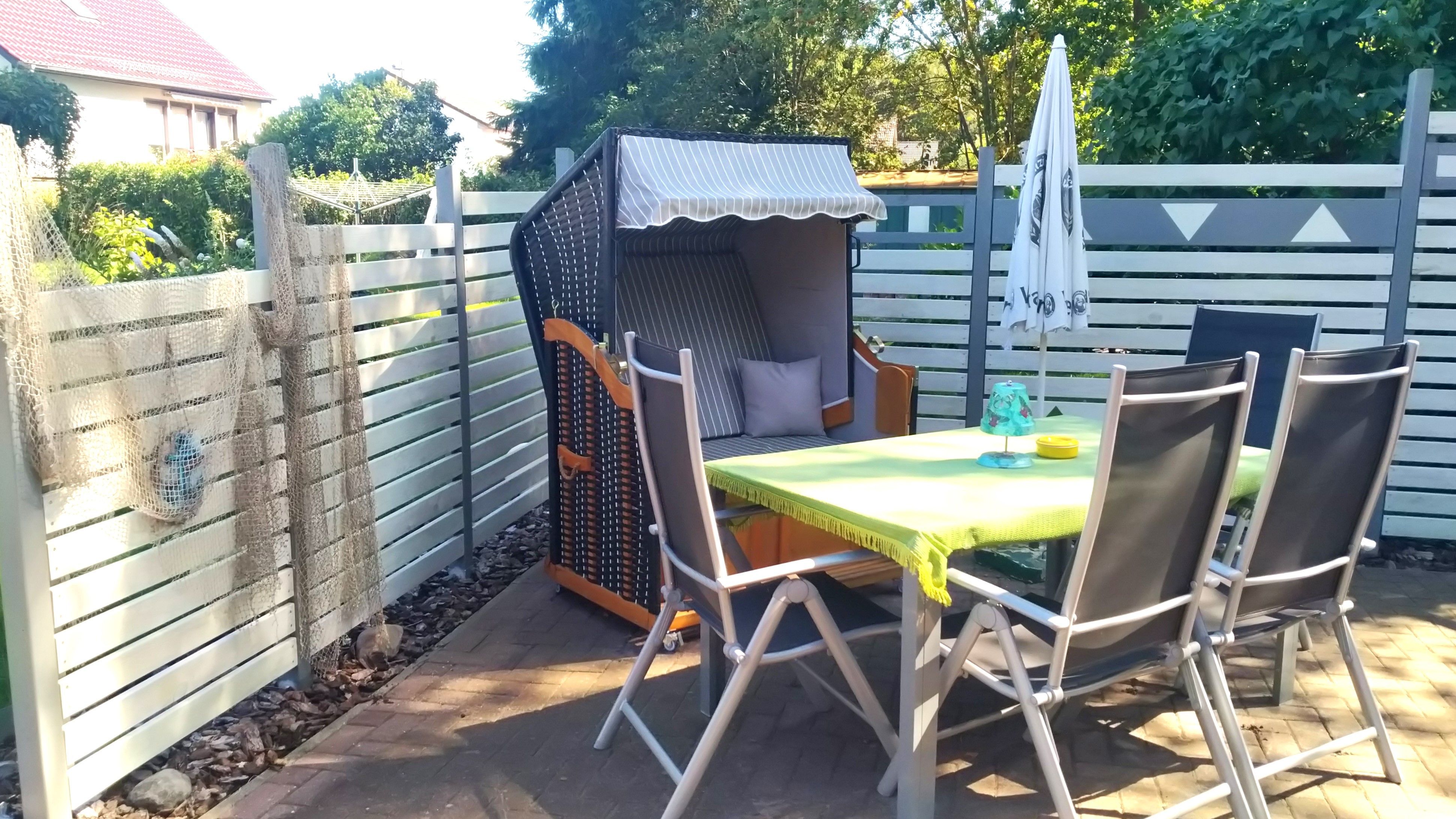 Zur Wohnung gehört eine gemütliche Sitzecke im Garten mit Grillmöglichkeit. Ein PKW- Stellplatz ist auch vorhanden. Unter dem Carport können Sie Ihre Fahrräder unterstellen. Teure E-Bikes können beim Vermieter in der Garage untergestellt werden. Die Wohnung ist für Kleinkinder unter 5 Jahren nicht geeignet.