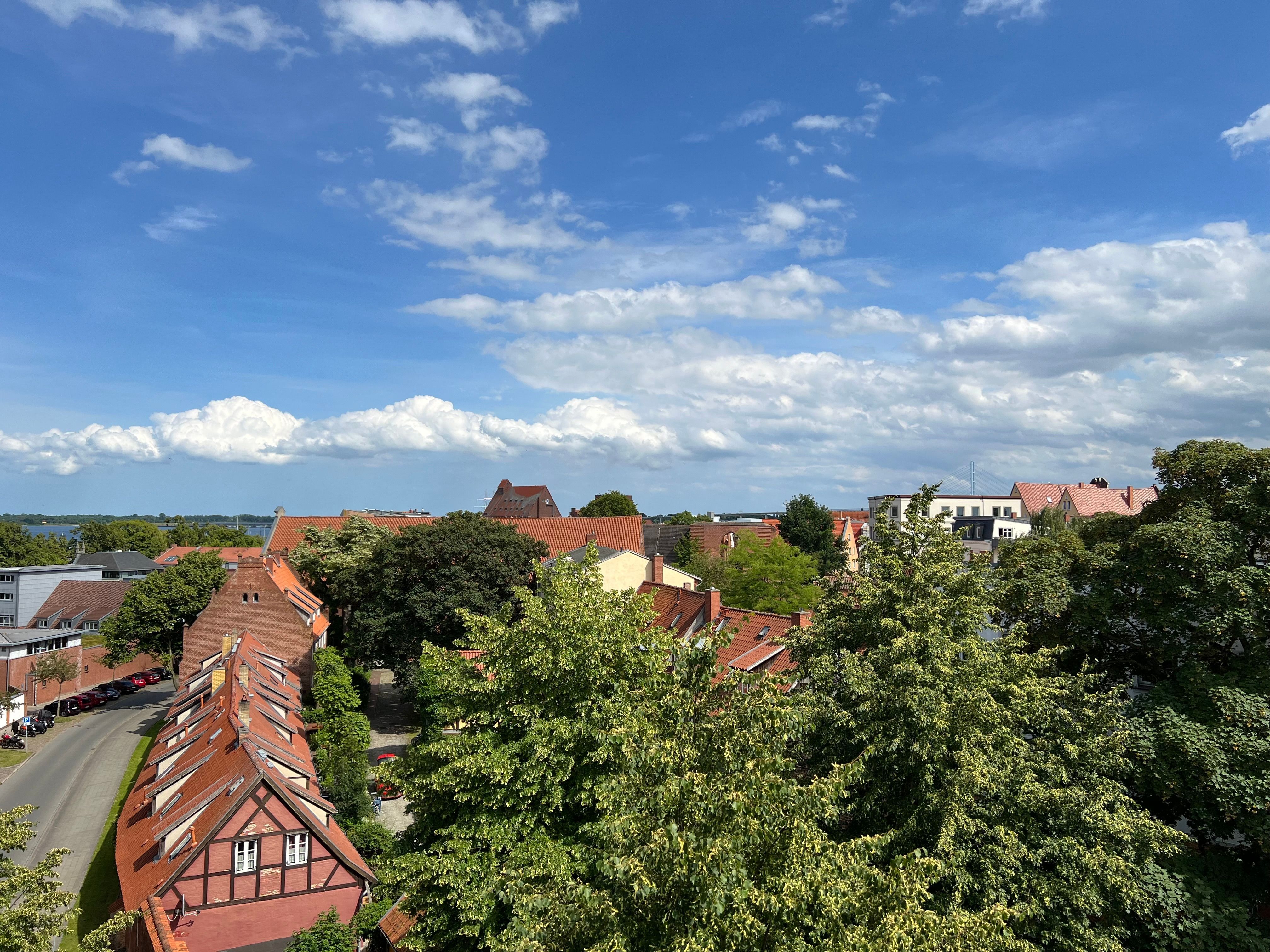 Allen Gästen unseres Hauses steht eine große Gemeinschaftsdachterrasse zur Verfügung. Hier haben Sie einen fantastischen Bilck auf das Stralsunder Theater, die Stadtmauer, die Altstadt und den Hafen.