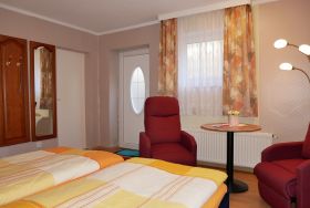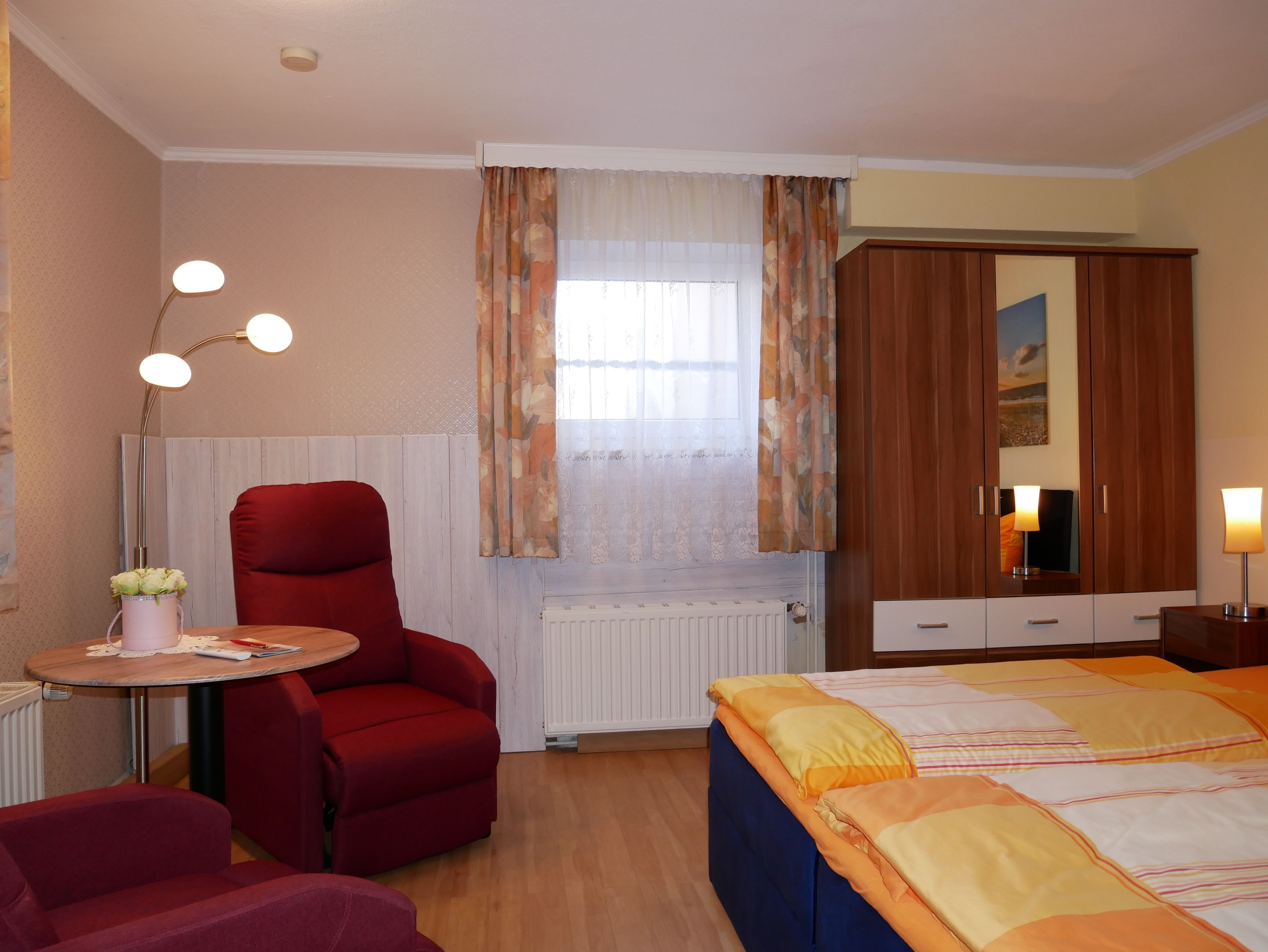 Die moderne Souterrain-Ferienwohnung ist ca. 34m² groß, mit gepflegter Ausstattung nah des Strandes. Der kombinierte Wohn- und Schlafraum ist mit einem gemütlichen Doppelbett, zwei Sesseln, einem Kleiderschrank, Flachbild-TV und mit einem Radio ausgestattet. Die separate Küche verfügt über ein 2-Platten-Herd, Kühlschrank, Wasserkocher, Toaster, Mikrowelle, Kaffeemaschine und über einen Tisch mit 2 Stühlen. Das Badezimmer ist mit einer Dusche/WC ausgestattet. Ein Parkplatz ist auf dem Grundstück vorhanden. Endreinigung, Bettwäsche und Handtücher sind inklusive. W-LAN ist kostenfrei vorhanden.