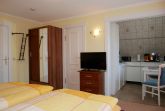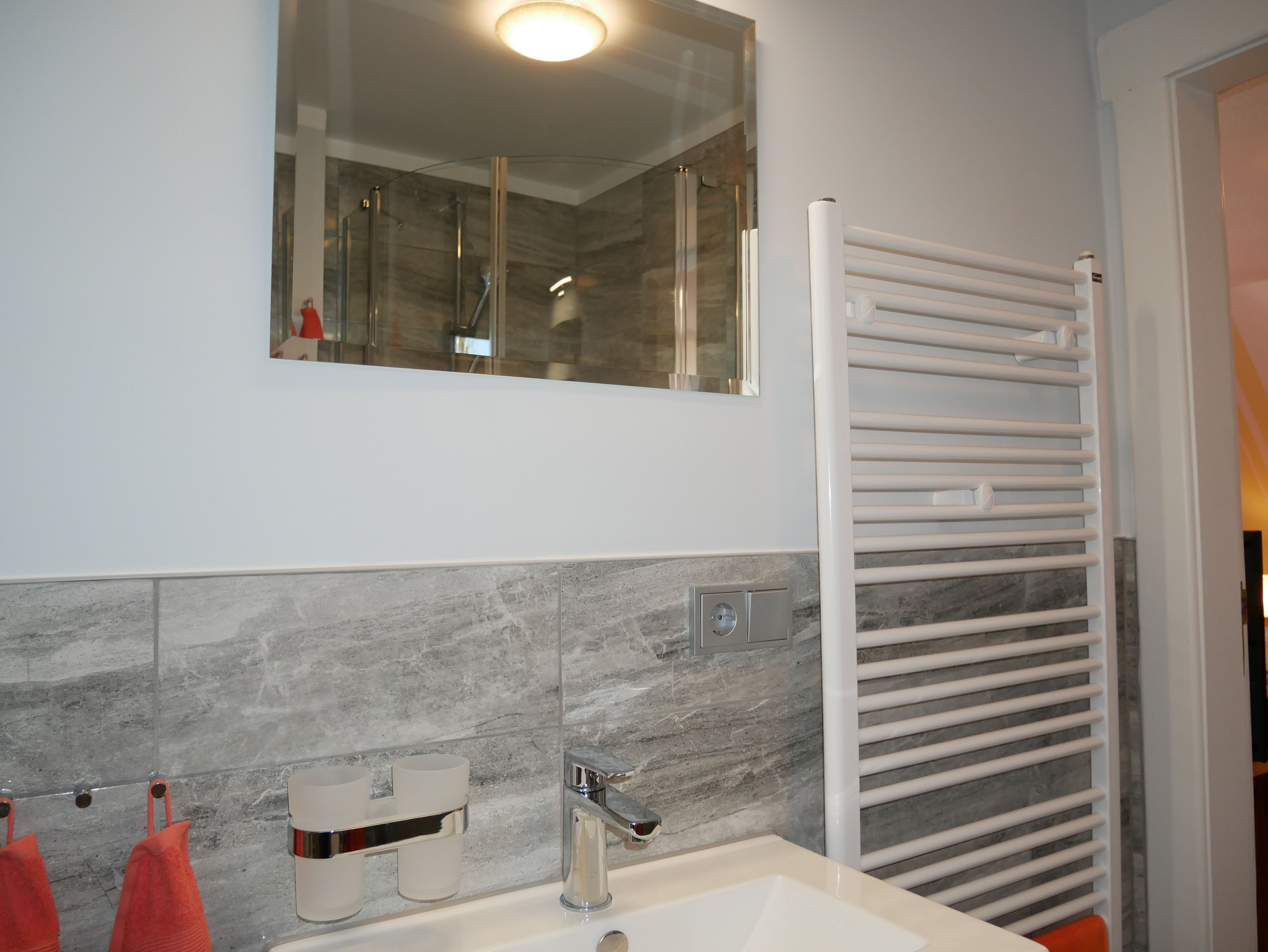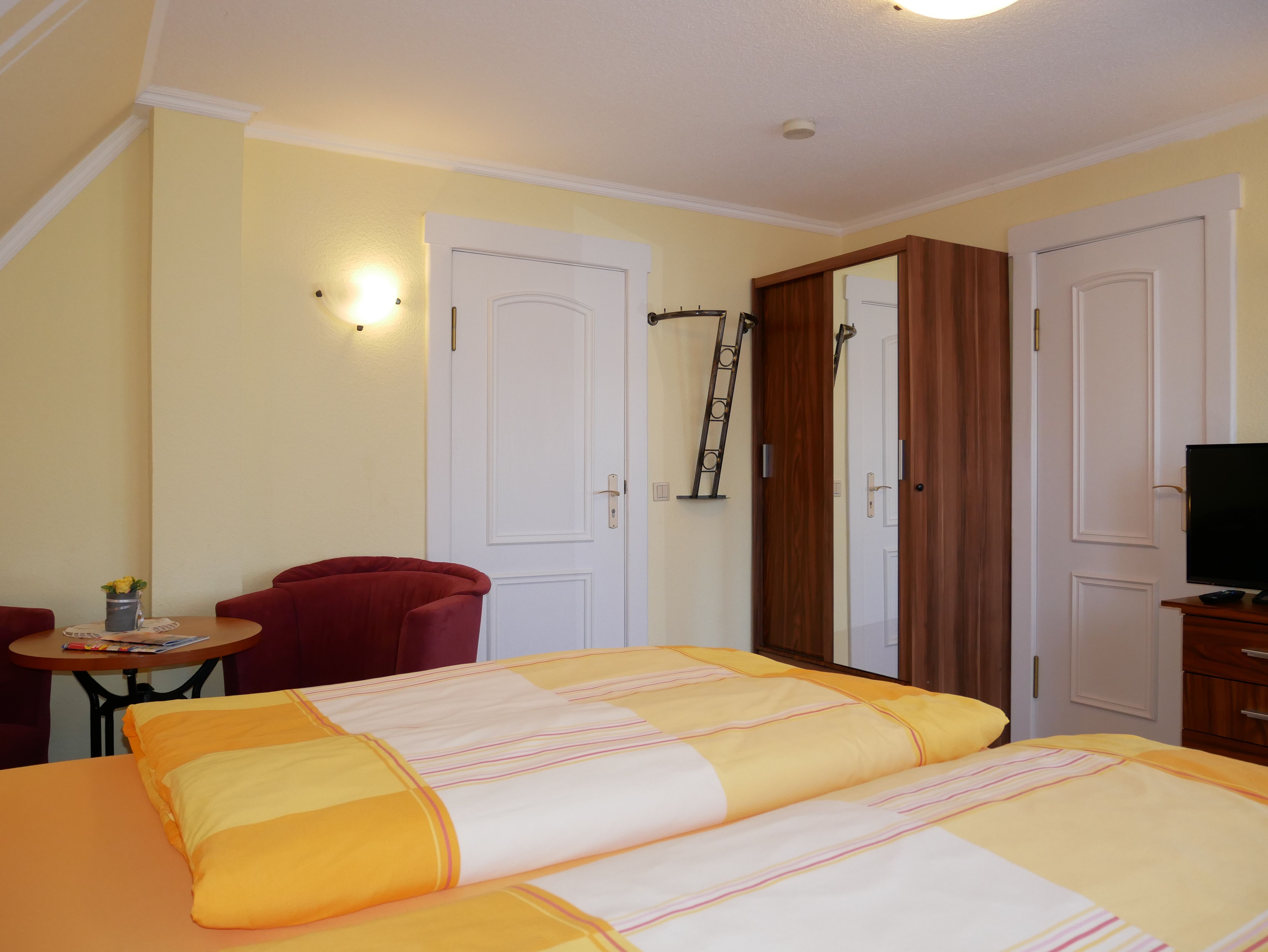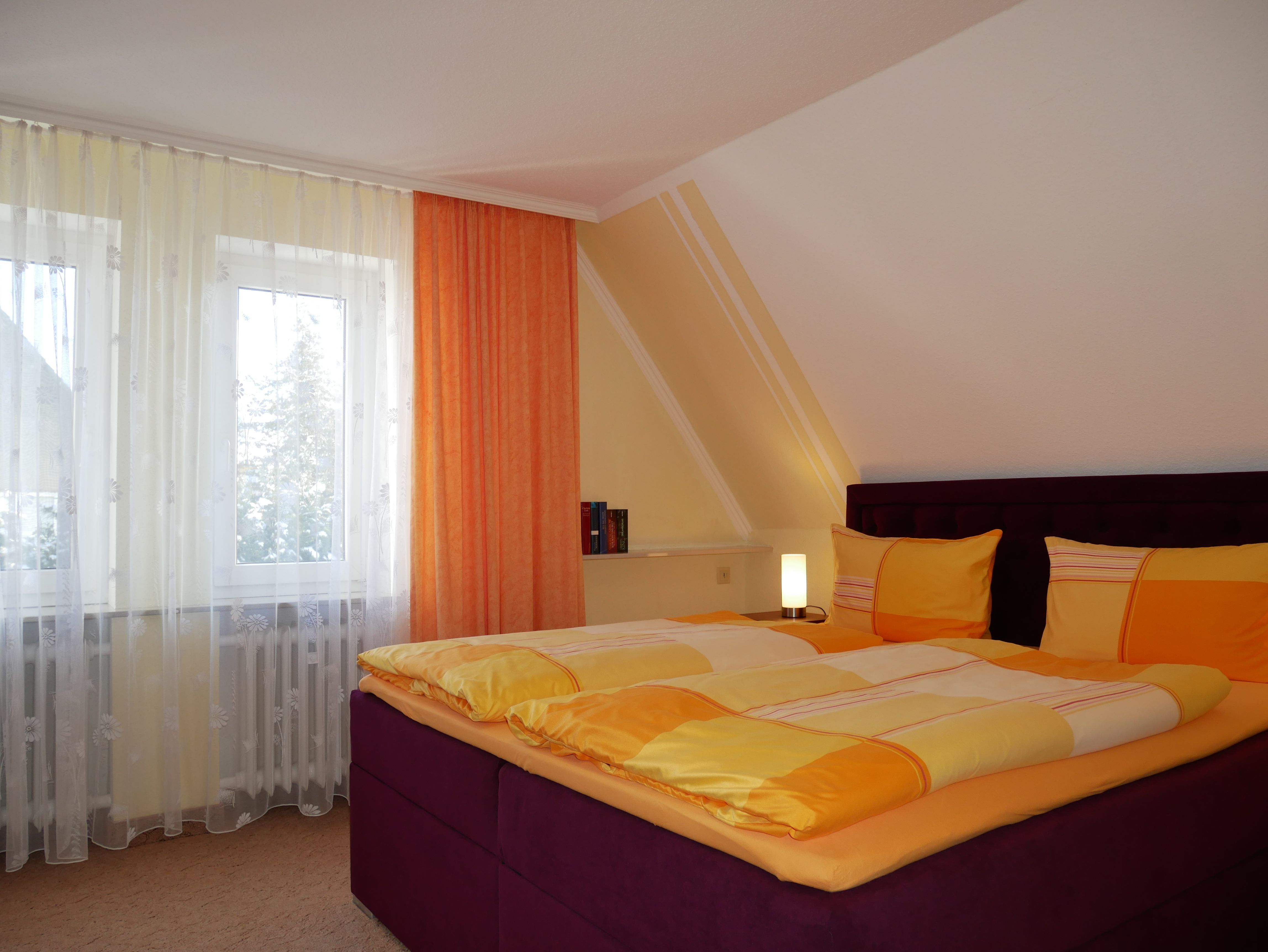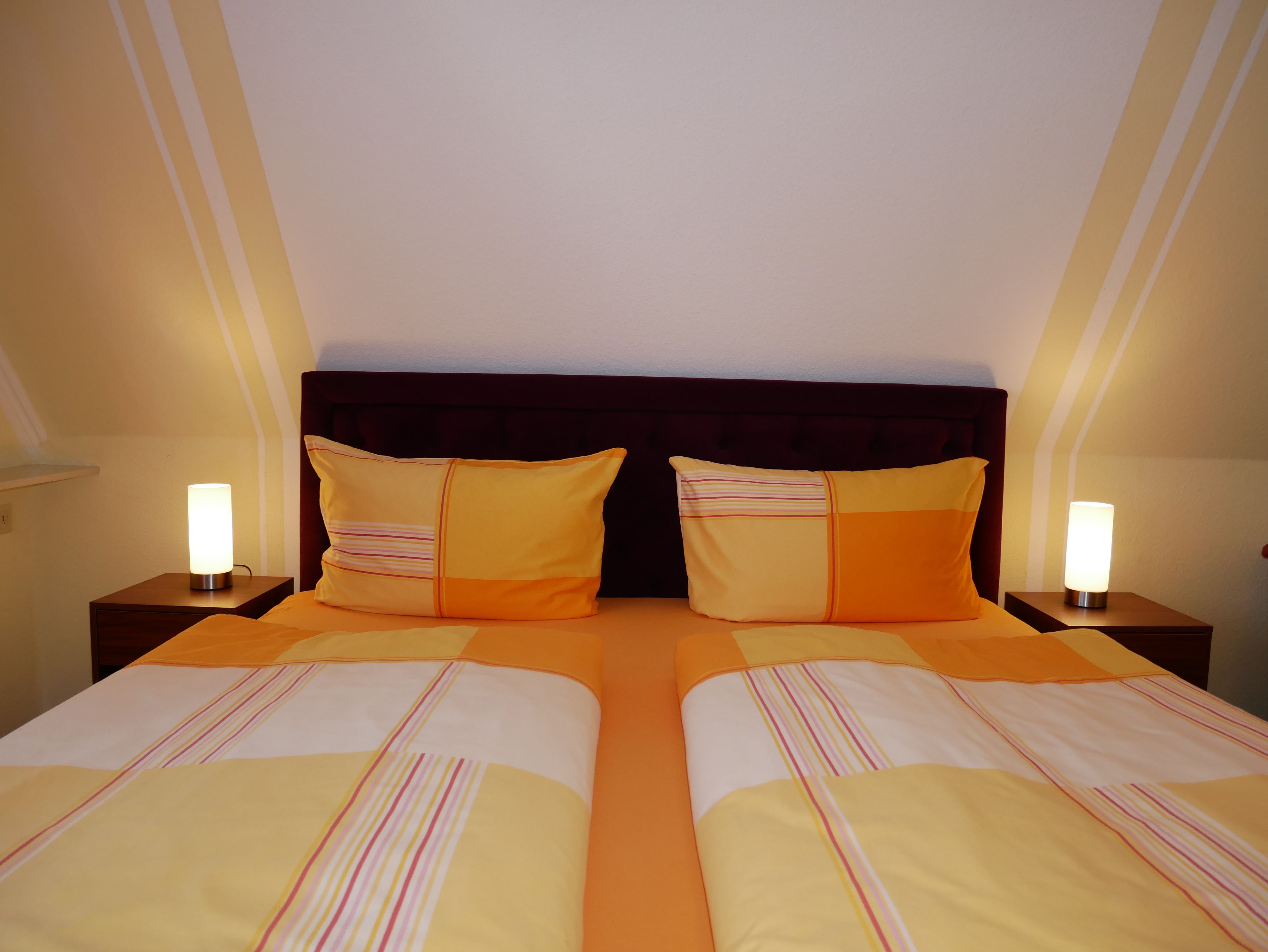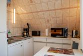 Die kleine gemütliche Ferienwohnung befindet sich im ersten Obergeschoss des Hauses und ist ca. 26m² groß. Der kombinierte Wohn- und Schlafraum ist ausgestattet mit einem großen Doppelbett, 2 Sesseln, Tisch, einem Kleiderschrank, Flachbild-TV und mit einem Radio. Die kleine Pantry-Küche ist optisch vom Wohnbereich abgeschlossen. Sie verfügt über einen Kühlschrank, 2-Platten-Herd, Mikrowelle, Toaster, Wasserkocher und Kaffeemaschine. Ein Esstisch mit zwei Stühlen befindet sich ebenfalls in der Küche. Das Badezimmer ist mit einer Dusche/WC und einer Handtuchheizung ausgestattet. Ein Parkplatz ist auf dem Grundstück vorhanden. Endreinigung, Bettwäsche und Handtücher sind inklusive. W-LAN ist kostenfrei vorhanden.