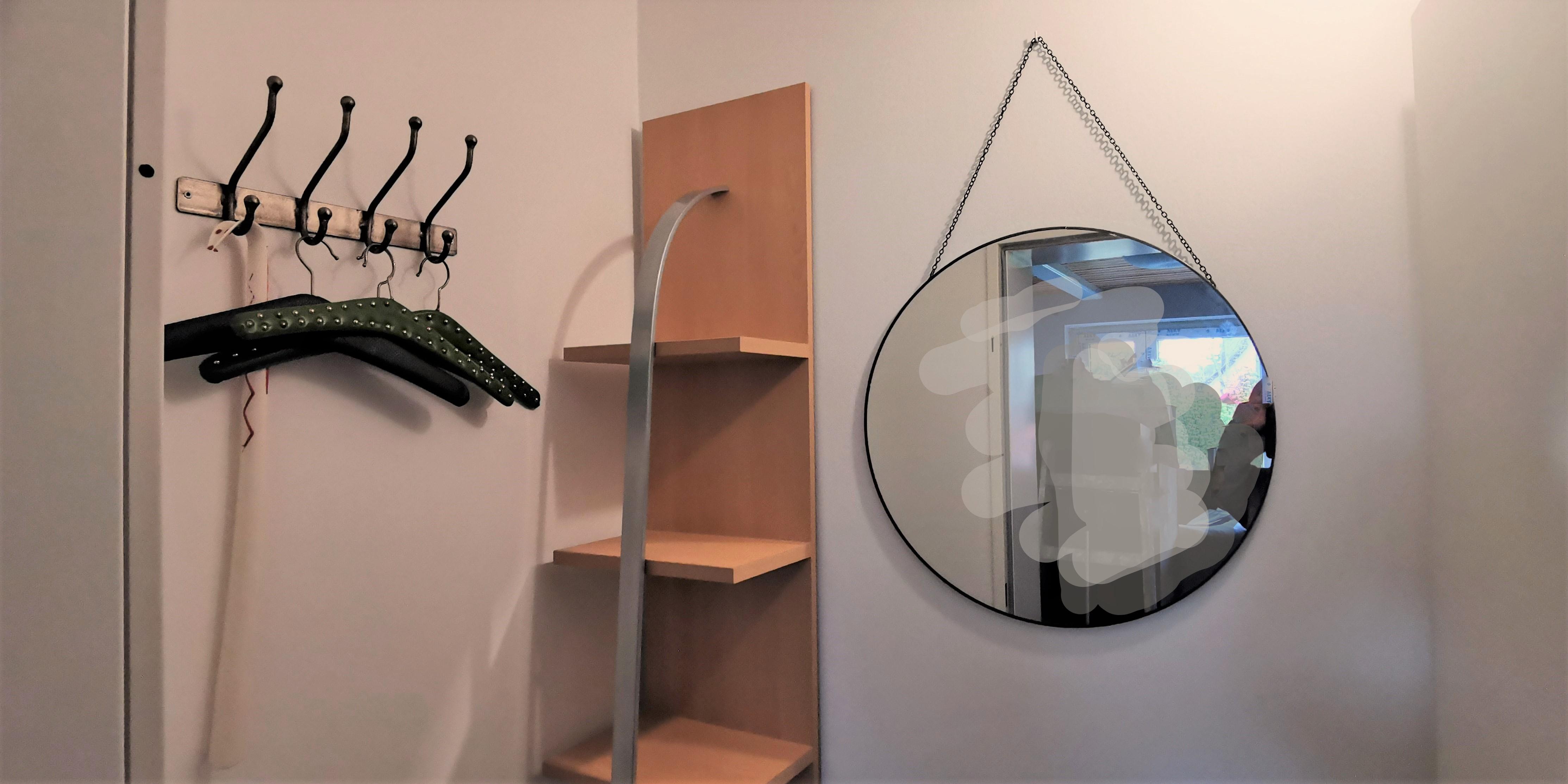 Vom Wohnzimmer betritt man zwei kleine miteindener verbundene Schlafzimmer mit einem Doppelbett (je 0,90 x 2,00m), einem Etagenbett ( 0,90 x 2,00m) im Kinderschlafzimmer und dem gemeinsam zu nutzenden Kleiderschrank ( siehe Zeichnung).