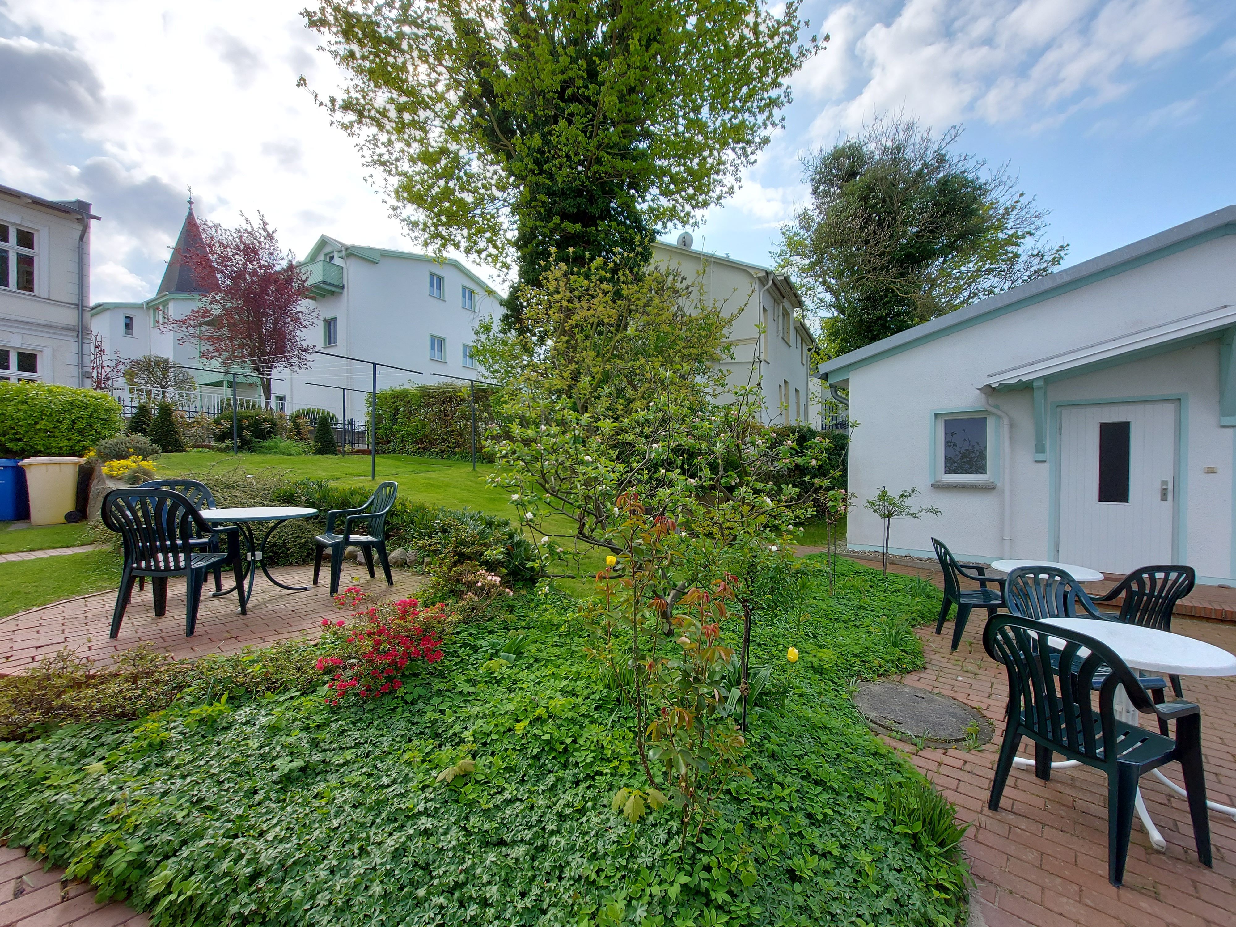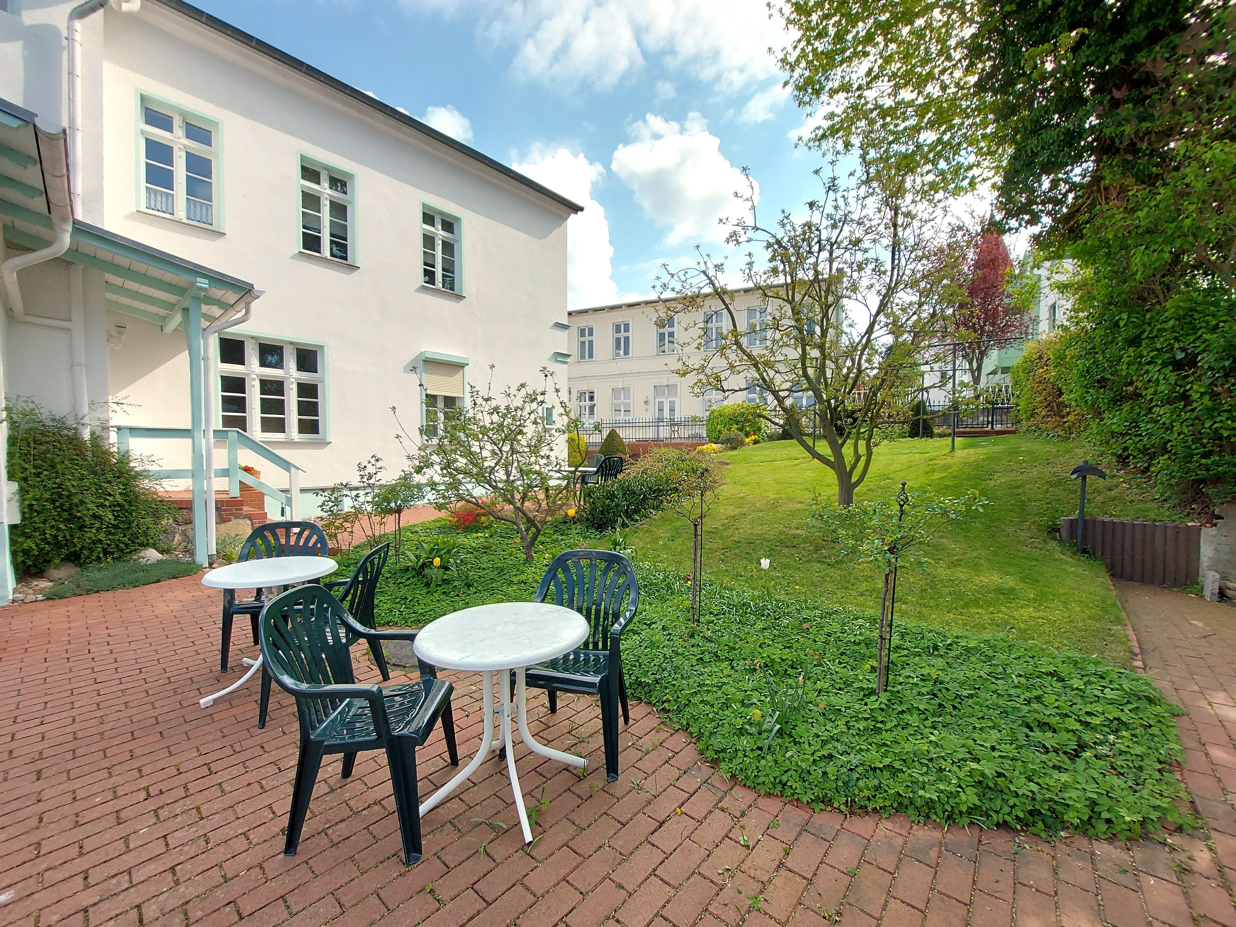 Im Garten finden Sie gemütliche Sitzecken, die gern genutzt werden können und zu entspannten Stunden einladen.