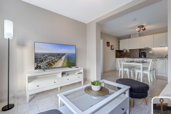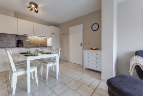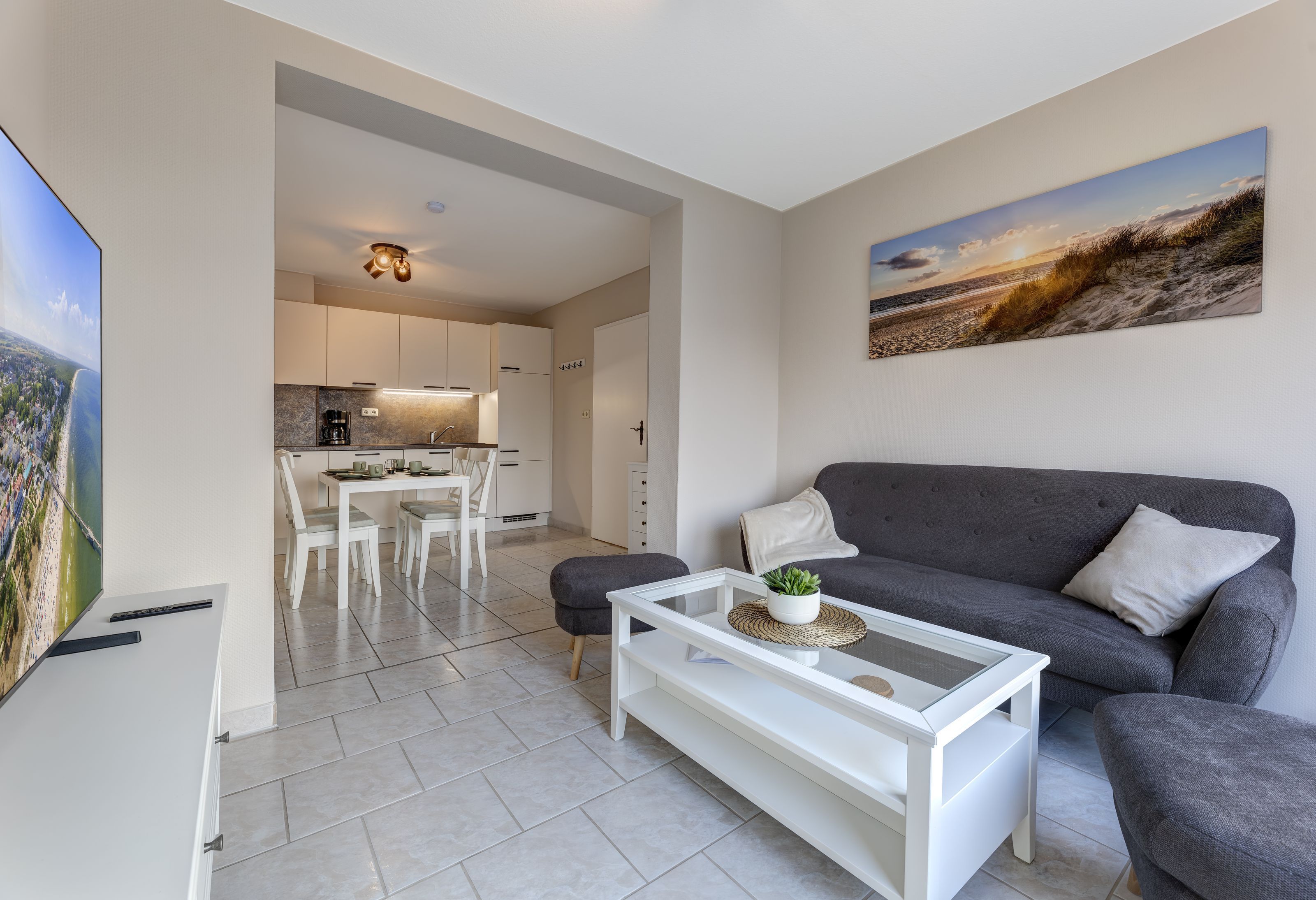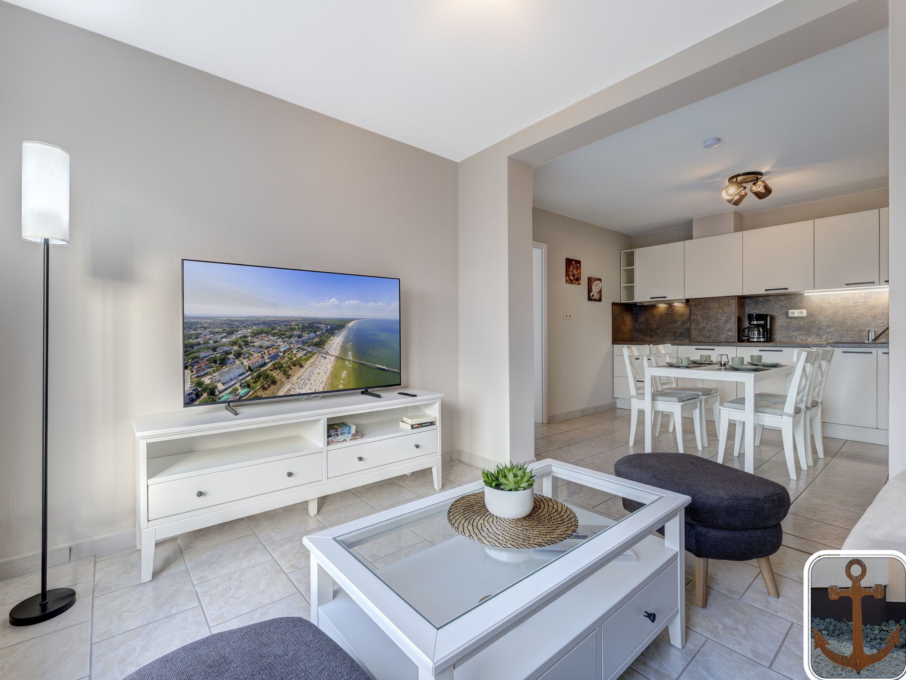 Das gemütliche Wohn-/Esszimmer verfügt über einen Wohnbereich mit Flachbild-TV, einen Essbereich für bis zu 4 Personen und einer offenen Küche.