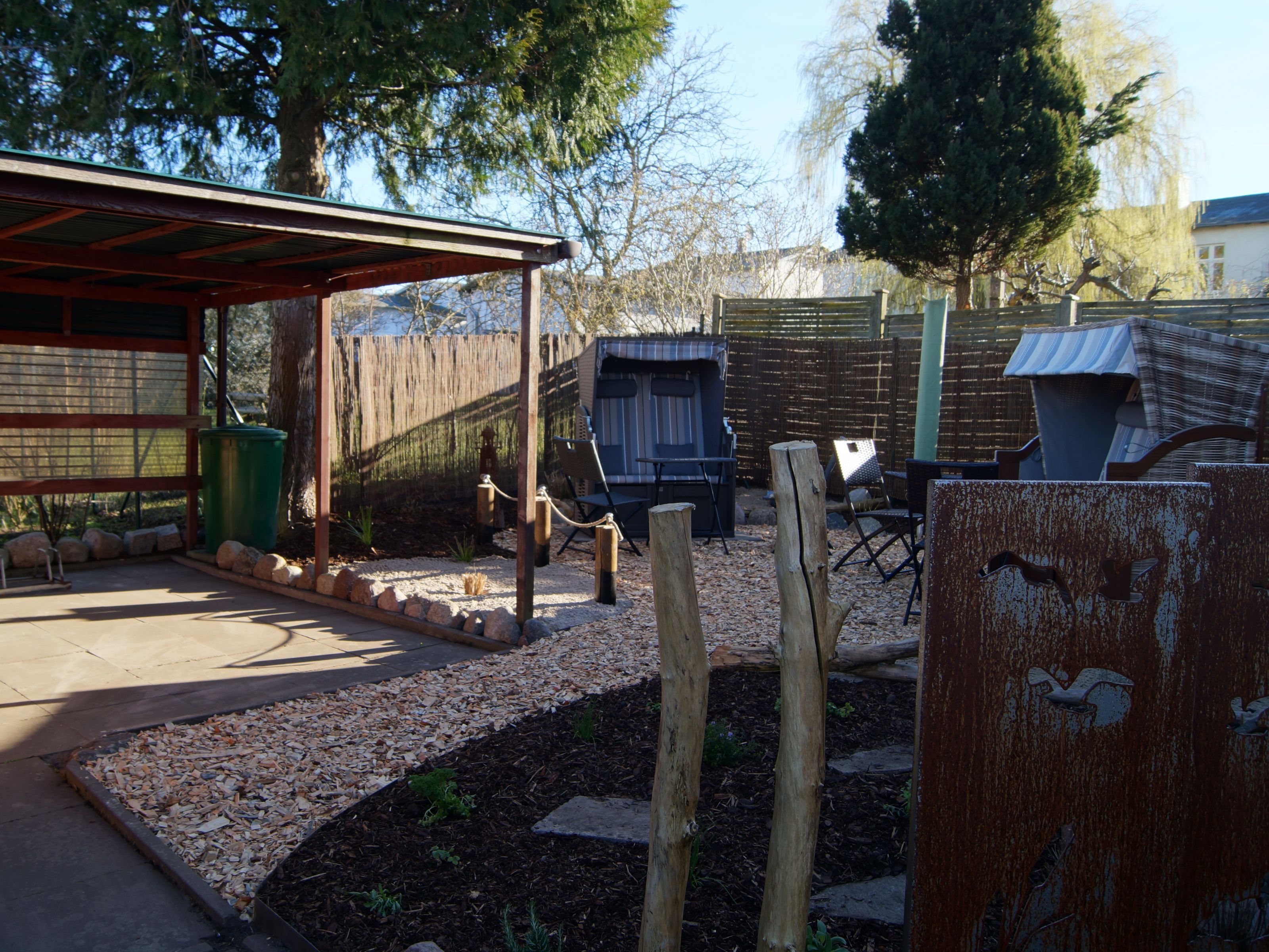 In der wärmeren Jahreszeit steht unseren Gästen noch ein ca. 60m² großer Urlaubergarten zur Verfügung. Hier findet sich zudem eine Unterstellmöglichkeit für Fahrräder mit der Möglichkeit ggf. mitgebrachte E-Bikes aufzuladen.