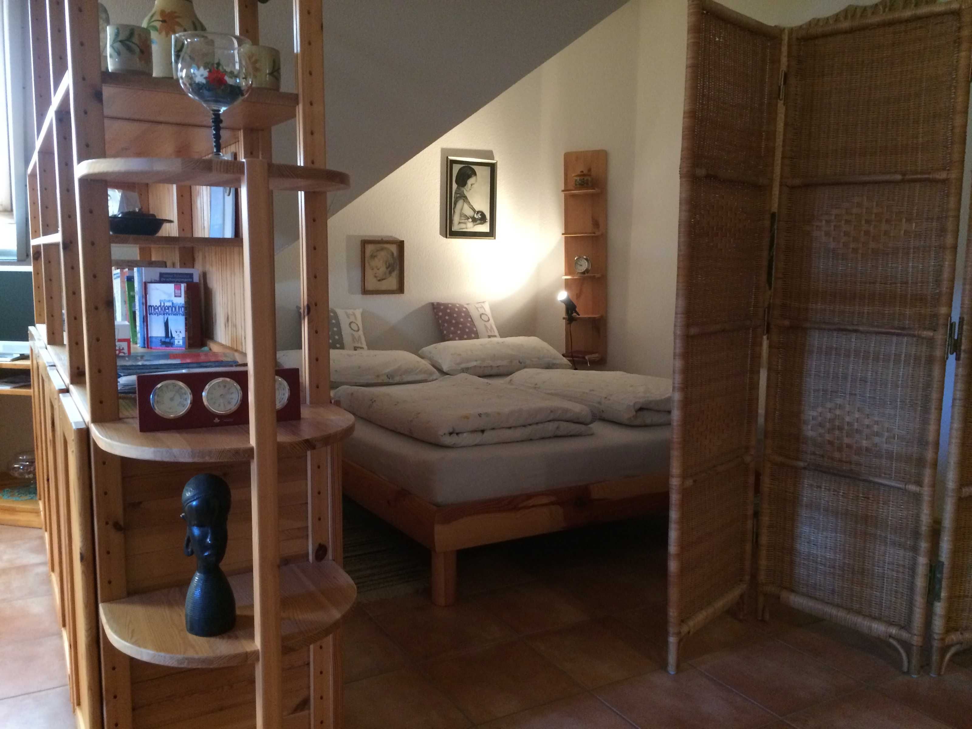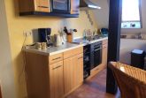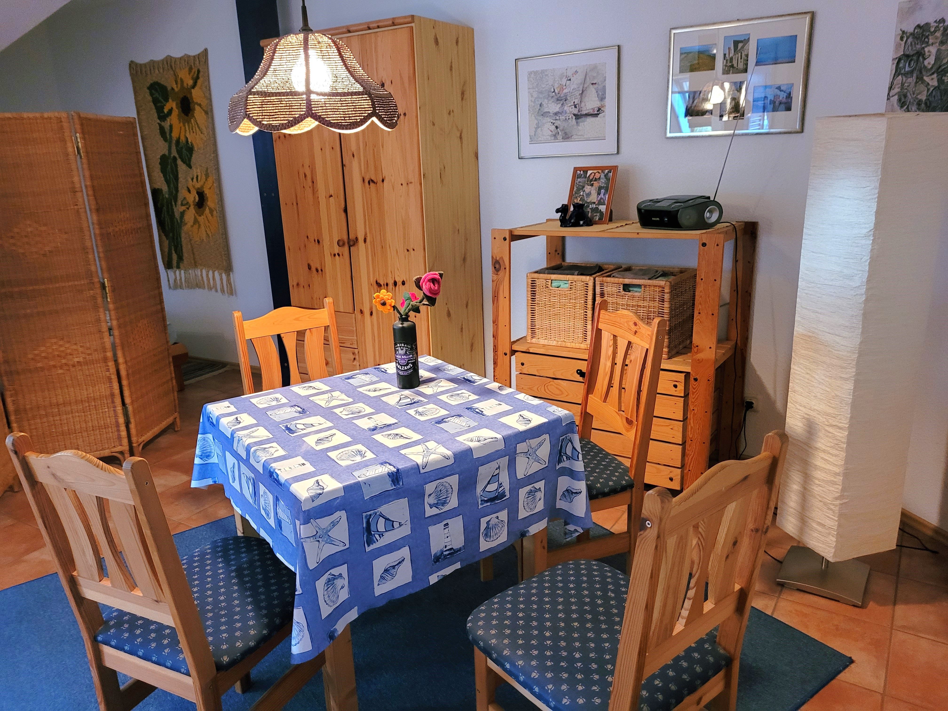 Unser Haus wurde 2003 erbaut und bietet Ihnen eine modern eingerichtete Nichtraucher-1-Raum-Ferienwohnung von 55 qm mit Fußbodenheizung und Terrakottafliesen, bestehend aus Diele, Bad (Dusche/WC), komplett eingerichtete Küchenzeile und großen Wohn-Schlaftrakt (Raumteiler) mit einem Doppelbett (1,60 m breit) und einer Schlafcouch, Radio, Sat-TV, Gartenpavillion mit Terrasse und Grill sowie Liegewiese.