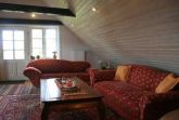Unsere größte Wohnung liegt im ersten Stock im Haupthaus, sie erstreckt sich über 2 Ebenen und ist über eine separate Außentreppe zu erreichen. Die Wohnung besteht aus drei Schlafzimmern, zwei Badezimmern - eines mit Dusche, das andere mit Badewanne - und einem großen Küchen- und Wohnzimmerbereich.
