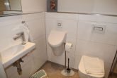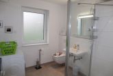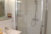 Die Wohnung verfügt im Erdgeschoss weiterhin über ein Schlafzimmer mit Boxspring-Doppelbett (durchgehender Topper, 1,80 m), Sessel und Kleiderschrank, sowie die beiden Badezimmer: Eines der Badezimmer ist mit großer, ebenerdiger Dusche, elektrischem Handtuchheizkörper, Fenster, WC, Waschbecken, Waschmaschine, Wäscheständer und Föhn ausgestattet, das zweite Badezimmer verfügt über eine weitere bodentiefe Dusche, Pissoir, WC und ein kleines Waschbecken.