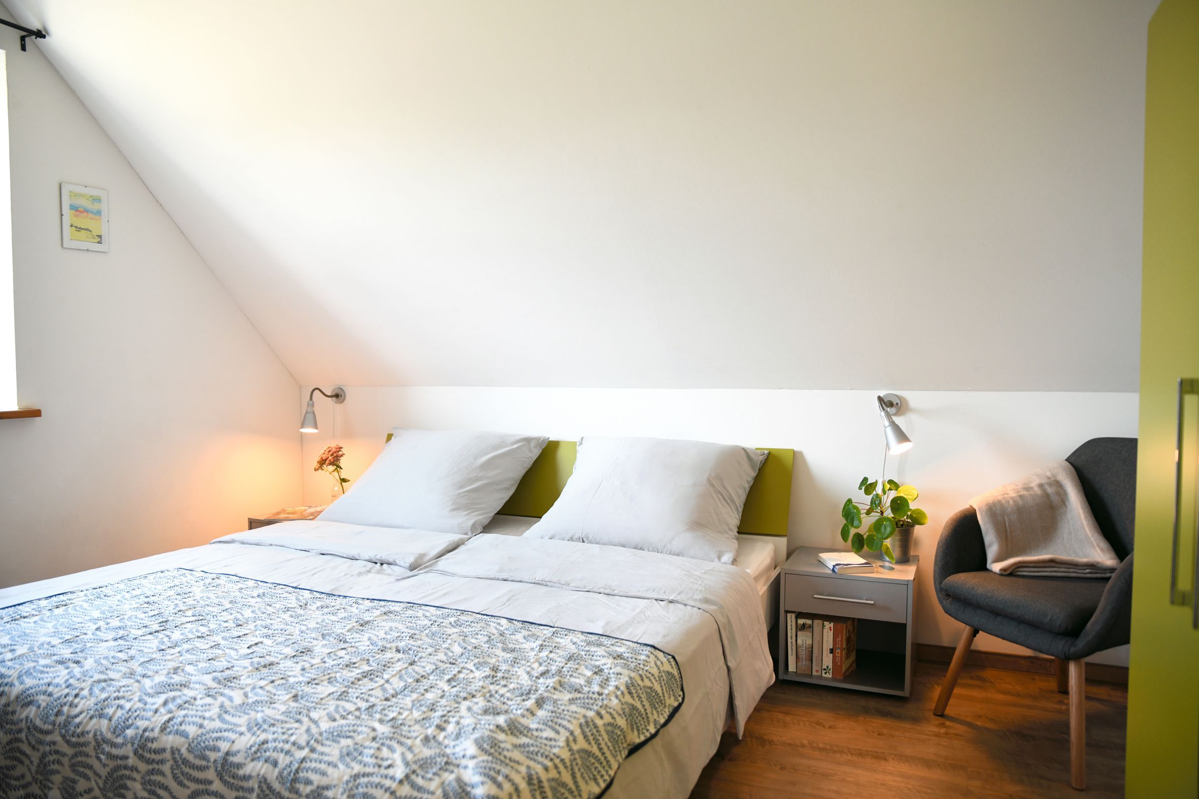 Jedes Haus bietet mit je 85 qm, auf 2 Etagen verteilt, ausreichend Platz für bis zu 5 erwachsene Gäste und 2 Kleinkinder bis 2 Jahre. Drei großzügige Schlafzimmer, 2 Dusch-Bäder, eine große Sauna und ein gemütlicher Wohn- Essbereich mit Kamin und angrenzender Terrasse mit freier Sicht zur Ostsee machen den Aufenthalt hier wirklich angenehm.