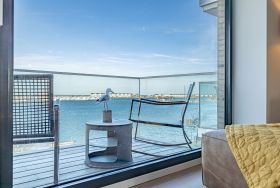 Im ersten Obergeschoss des Ostseeresorts Olpenitz gelegen, bieten diese Ferienwohnungen einen atemberaubenden Blick auf den Hafen, den charmanten Leuchtturm von Schleimünde und die Weiten der Ostsee. Mit dem hauseigenem Aufzug gelangen Sie mühelos zu Ihrer Ferienwohnung und zur großzügigen, 270 m² großen Dachterrasse, die allen Gästen zur Verfügung steht der perfekte Ort, um die Aussicht und die Meeresbrise zu genießen.