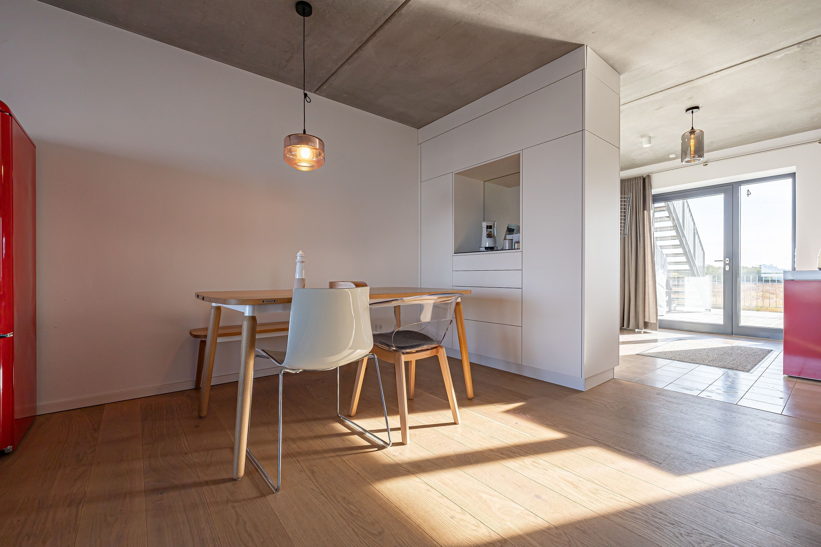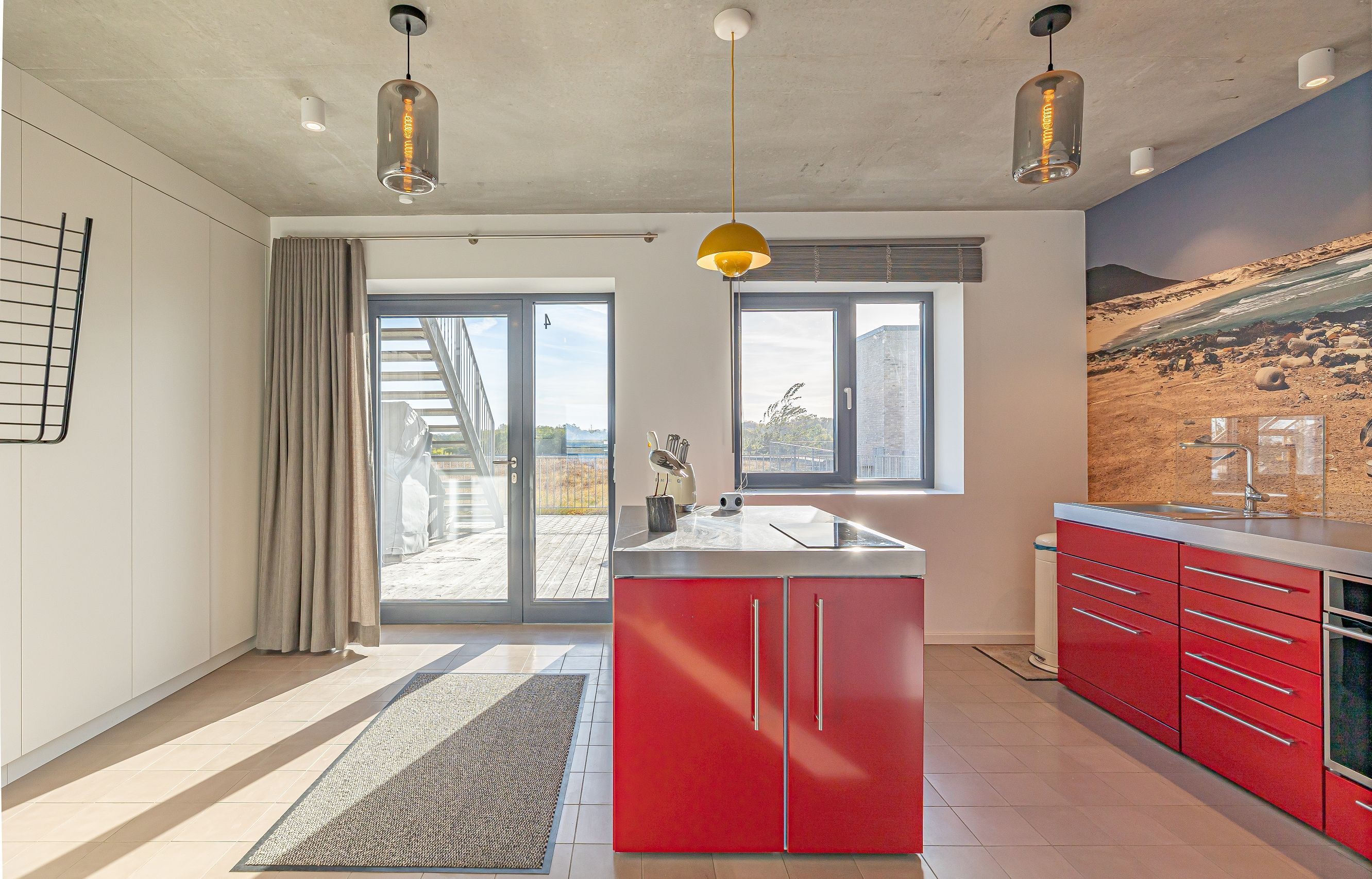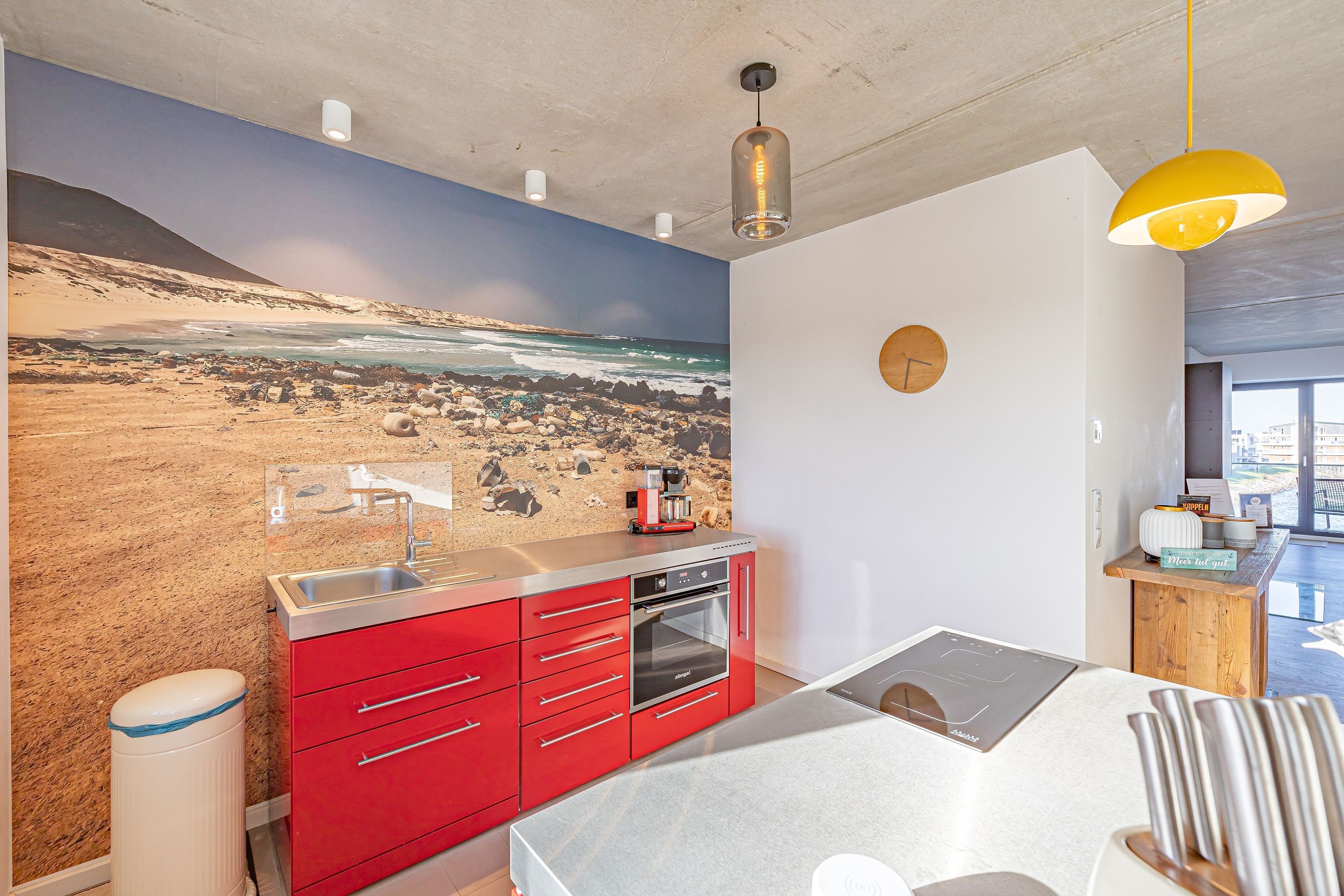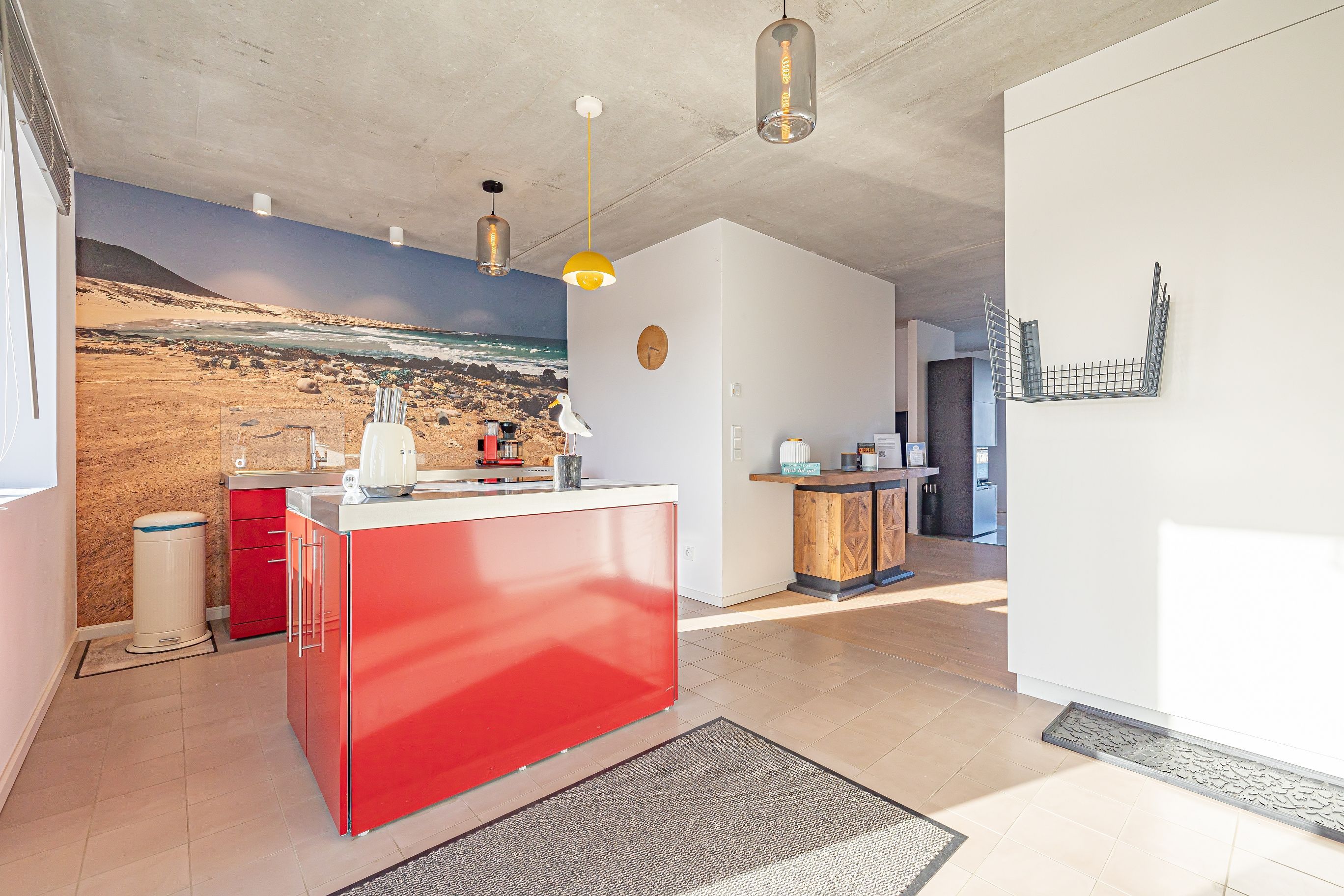 Die offene Designküche, komplett ausgestattet und mit einem inspirierenden Wandbild verziert, lädt zu genussvollen Kochabenden ein. Entspannen Sie im stilvollen Wohnbereich mit Kamin und lassen Sie sich von der traumhaften Aussicht auf den Hafen, die Schleimündung mit Leuchtturm und die Ostsee verzaubern.
